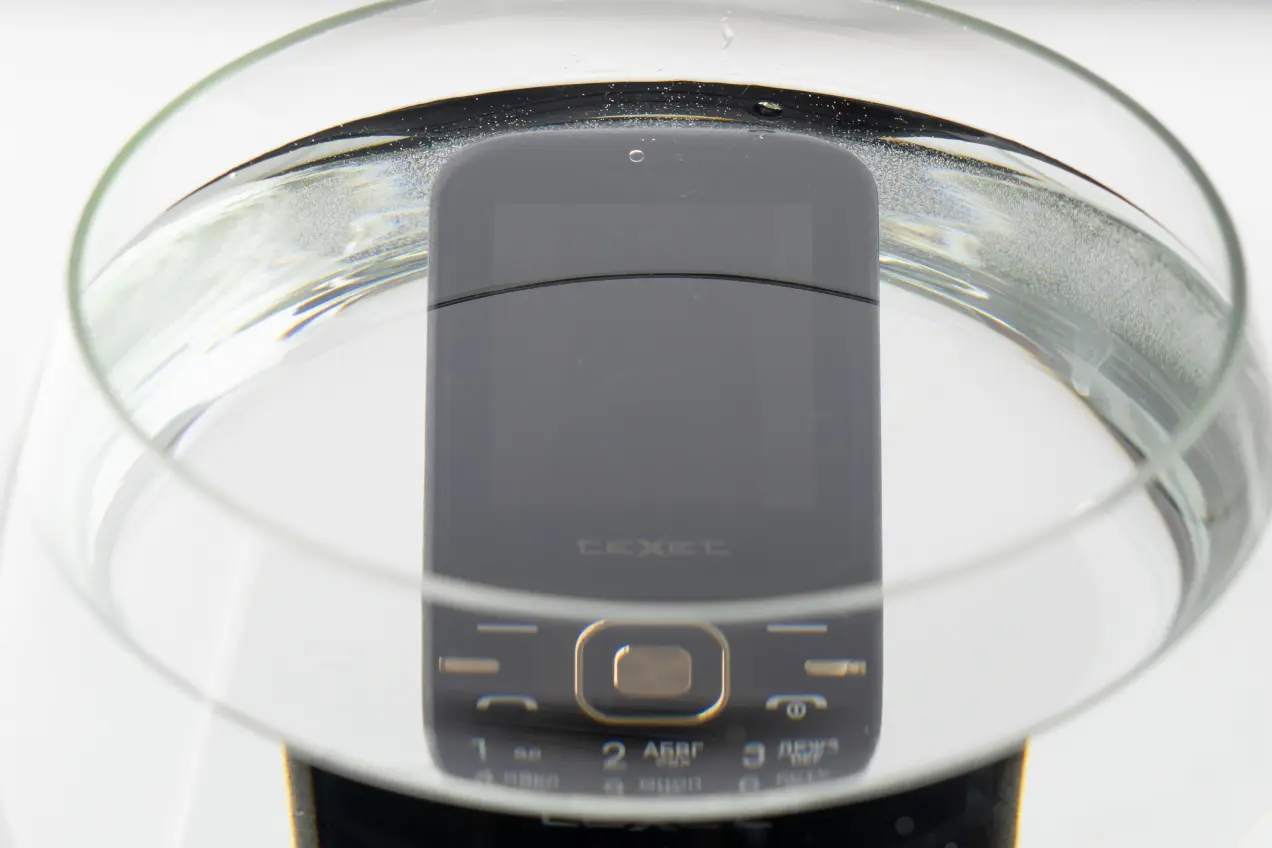 Полстакана воды и полминуты в луже — даже для незащищенного телефона это не смертельно. Стряхнул капли, протер — и можно пользоваться. Texet TM-216 после этого звонит и принимает звонки, слышимость отличная, клавиатура не глючит.
