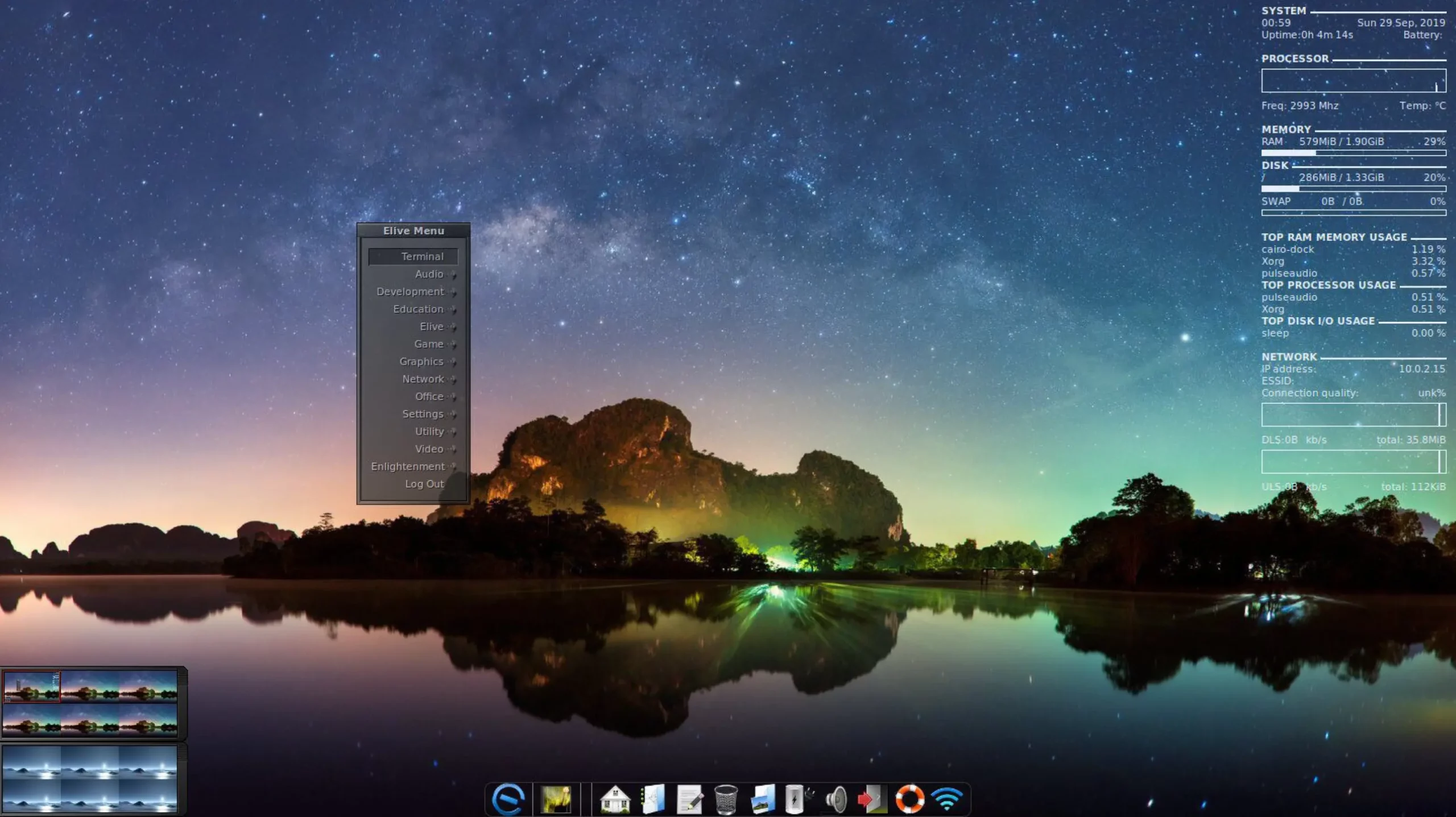 Когда Windows 10 начала надоедать автоматическими обновлениями, захотелось снова начать контролировать свой ПК и перейти на Linux. Искал что-то новое и наткнулся на EliveOS — систему с менеджером окон Enlightenment, где основное внимание уделено красоте и простоте. Установка с флешки прошла без проблем, как и запуск и в дальнейшем ежедневное использование дистрибутива в качестве второй системы (после истории с нетбуком я никогда не устанавливал Linux как основную ОС).
