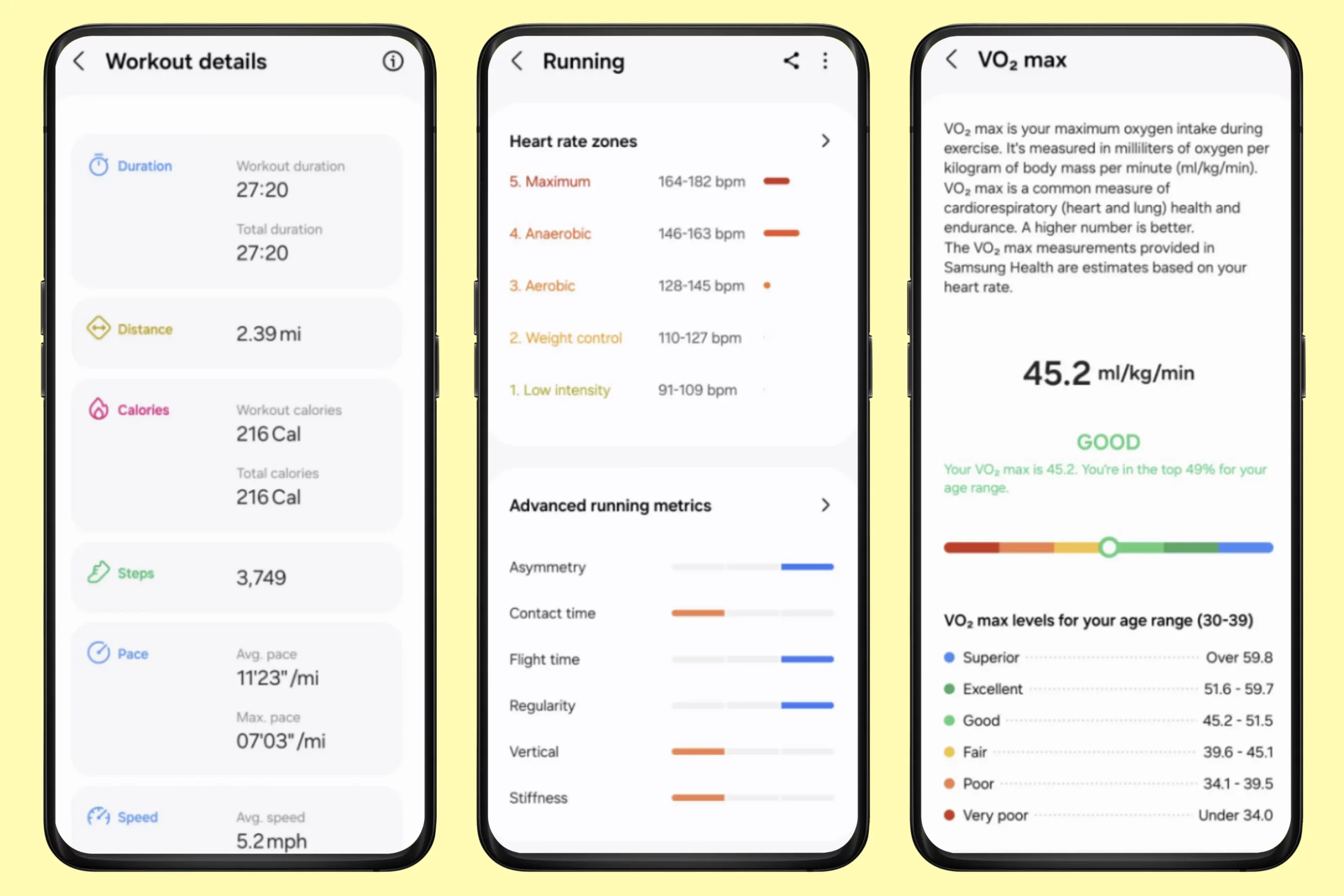 Отдельно стоит отметить расширенное отслеживание тренировок. Например, во время бега Galaxy Watch Ultra не только записывают расстояние, время и сожженные калории, но также определяют средний ритм, скорость, уровни ЧСС, различные метрики и даже объем кислорода в минуту на килограмм массы тела.