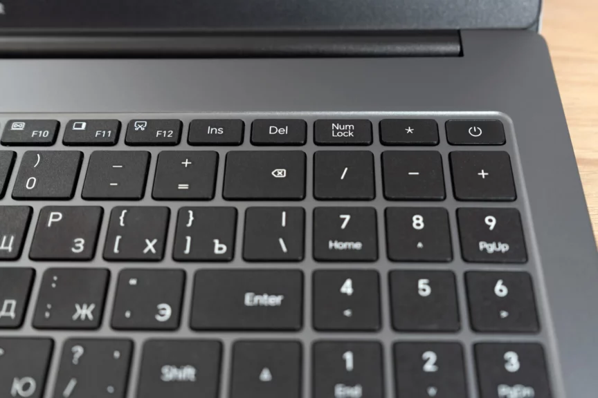 Подсветки у клавиатуры нет, что может осложнять работу в темноте. Не предусмотрена здесь и авторизация по отпечатку пальца: кнопка включения очень похожа на сканер отпечатка, но, увы, таковым не оснащена.