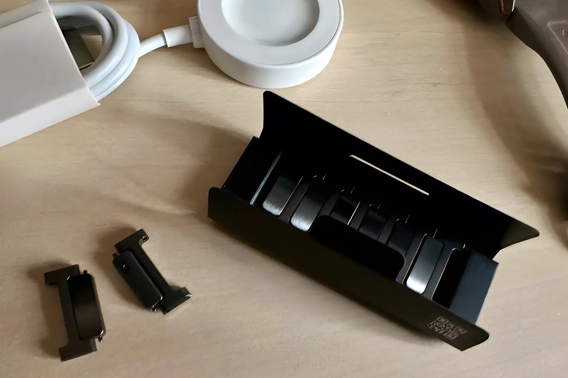 Конечно, я первым делом поискала в коробке отвертку, чтобы уменьшить браслет, но, к моему удивлению, никакой отвертки там не оказалось. Зато на каждом звене браслета нашлись крохотные задвижки, которые особенно удобно отодвигать длинными ногтями (даже не представляю, как мальчики с этим справляются). В итоге я удалила всего два звена — и огромные часы сели как влитые на мою маленькую женскую руку.