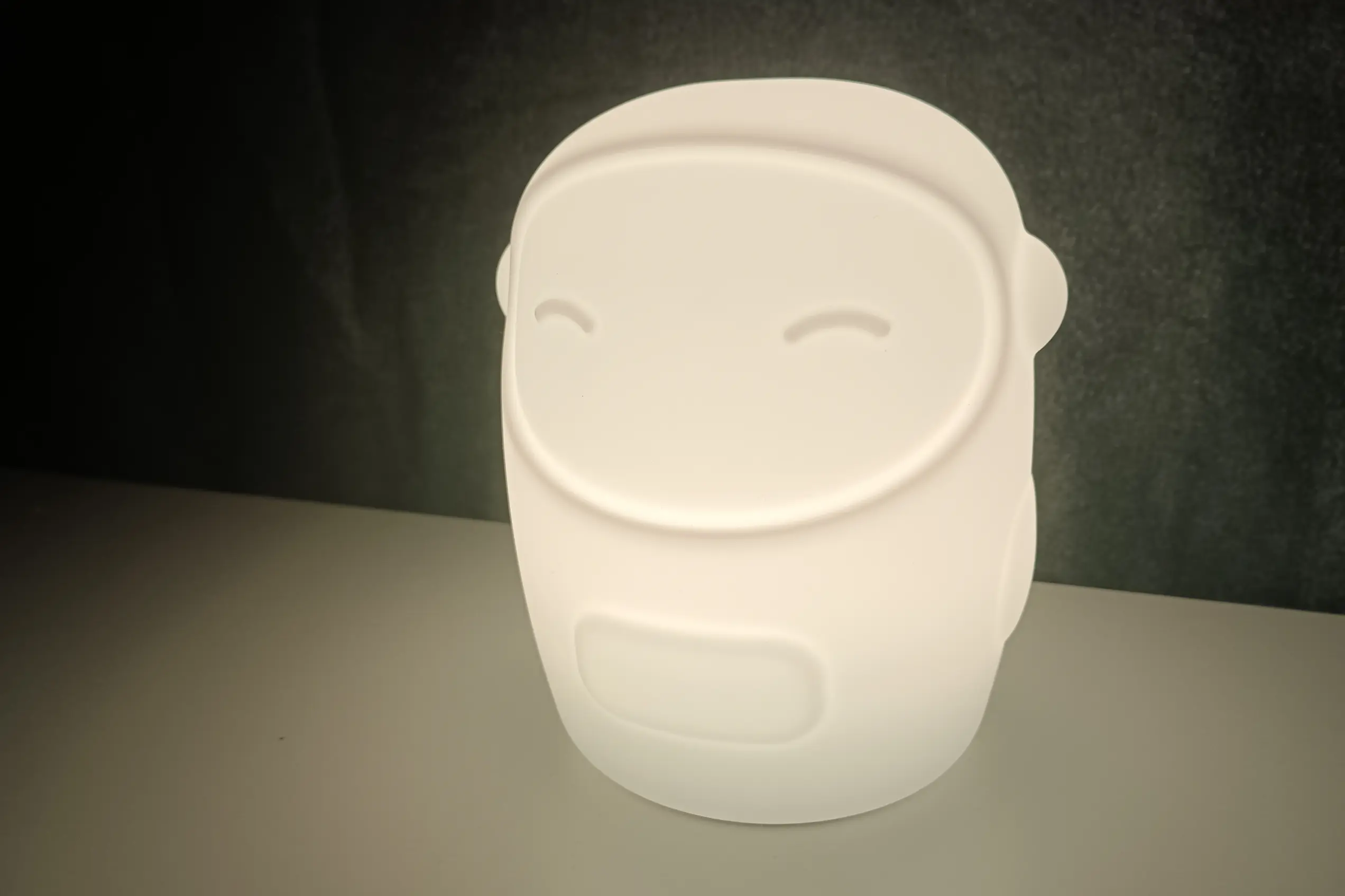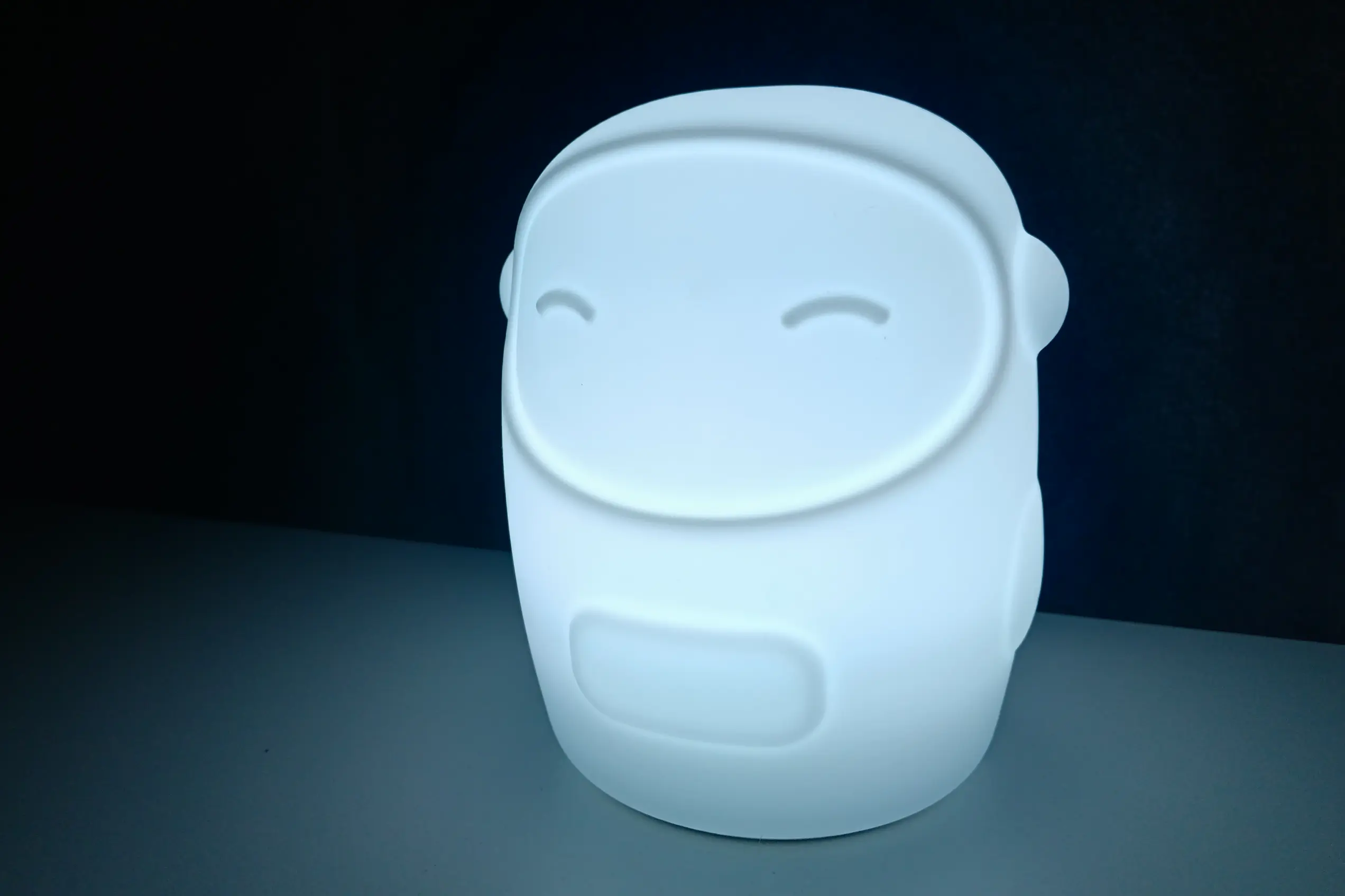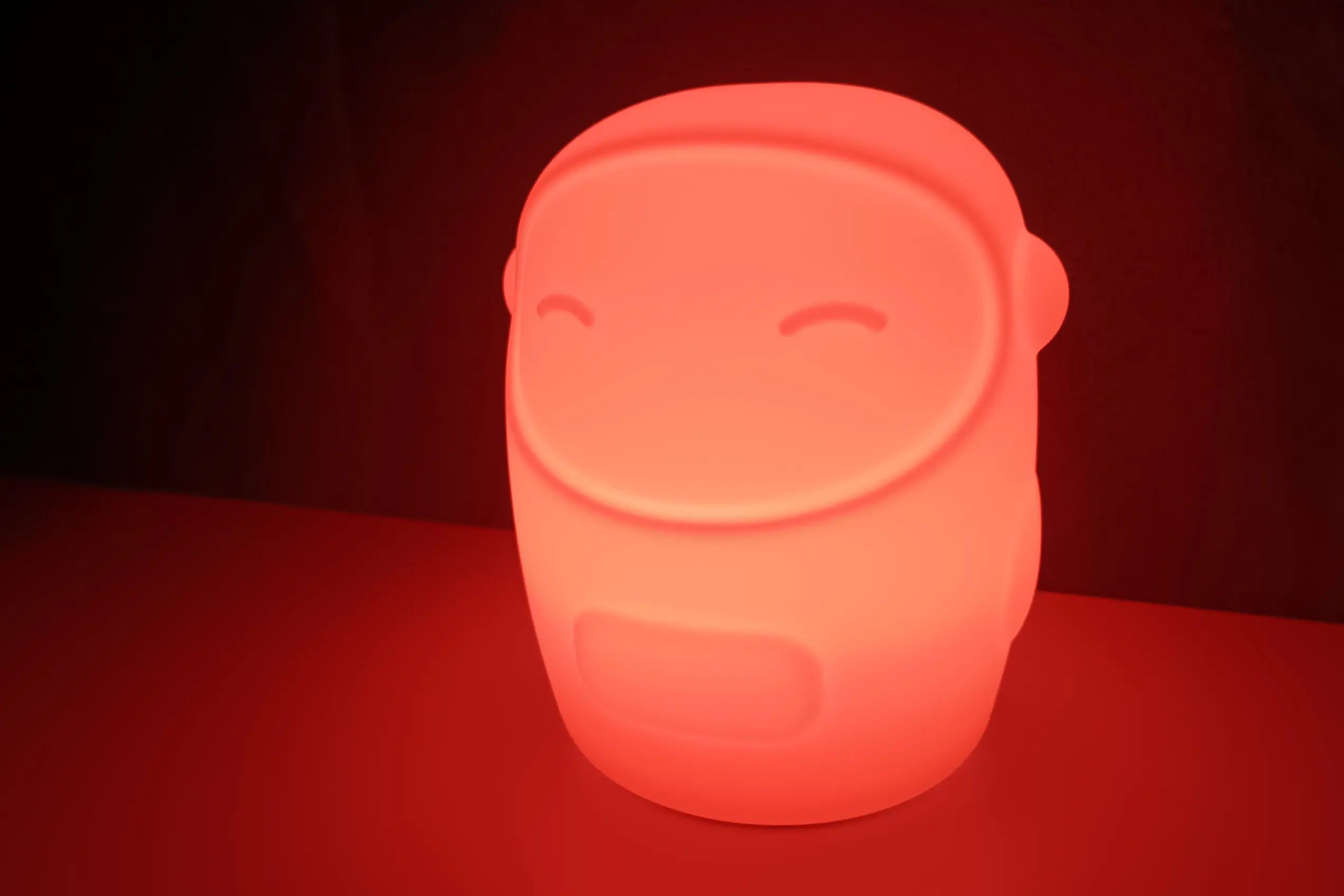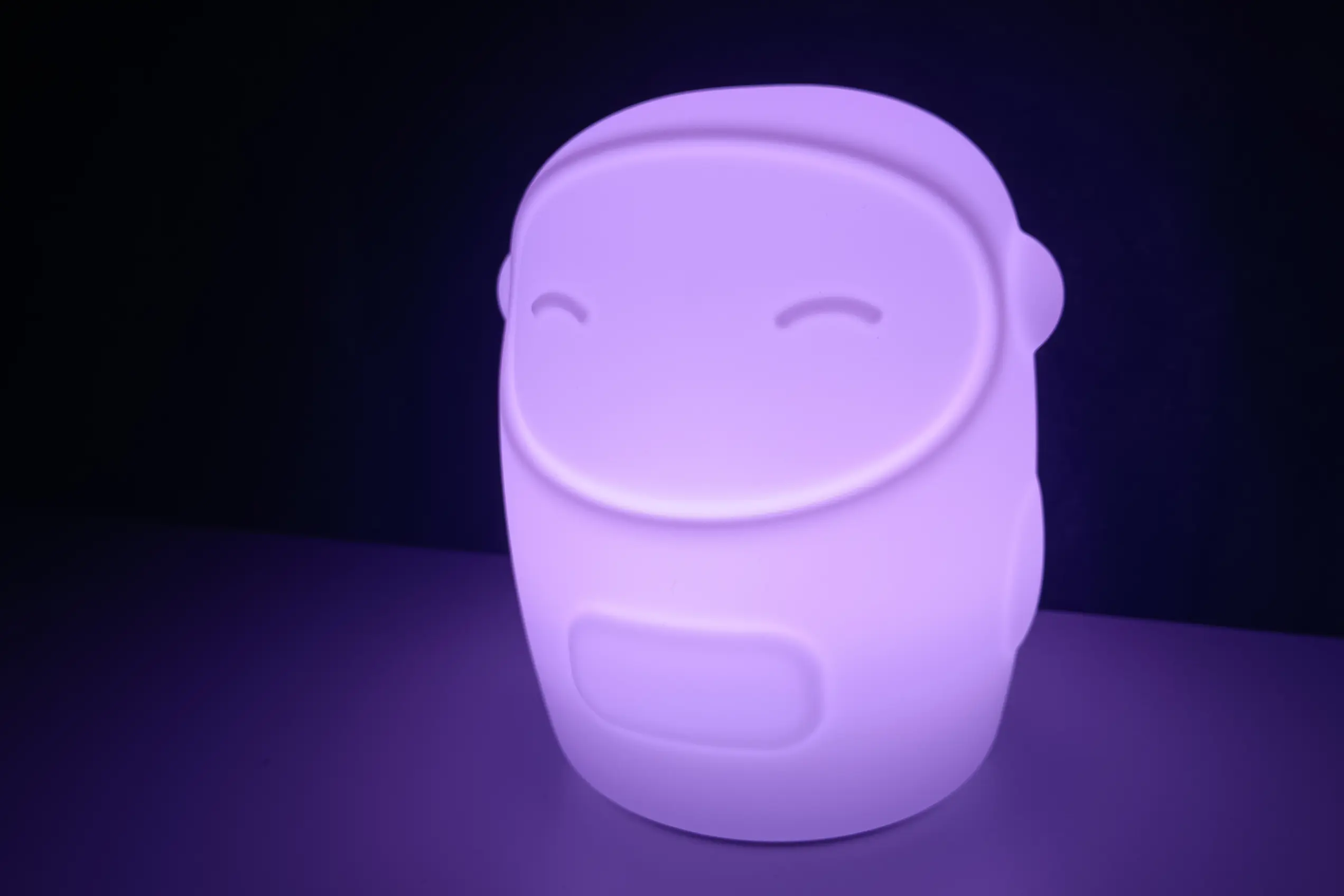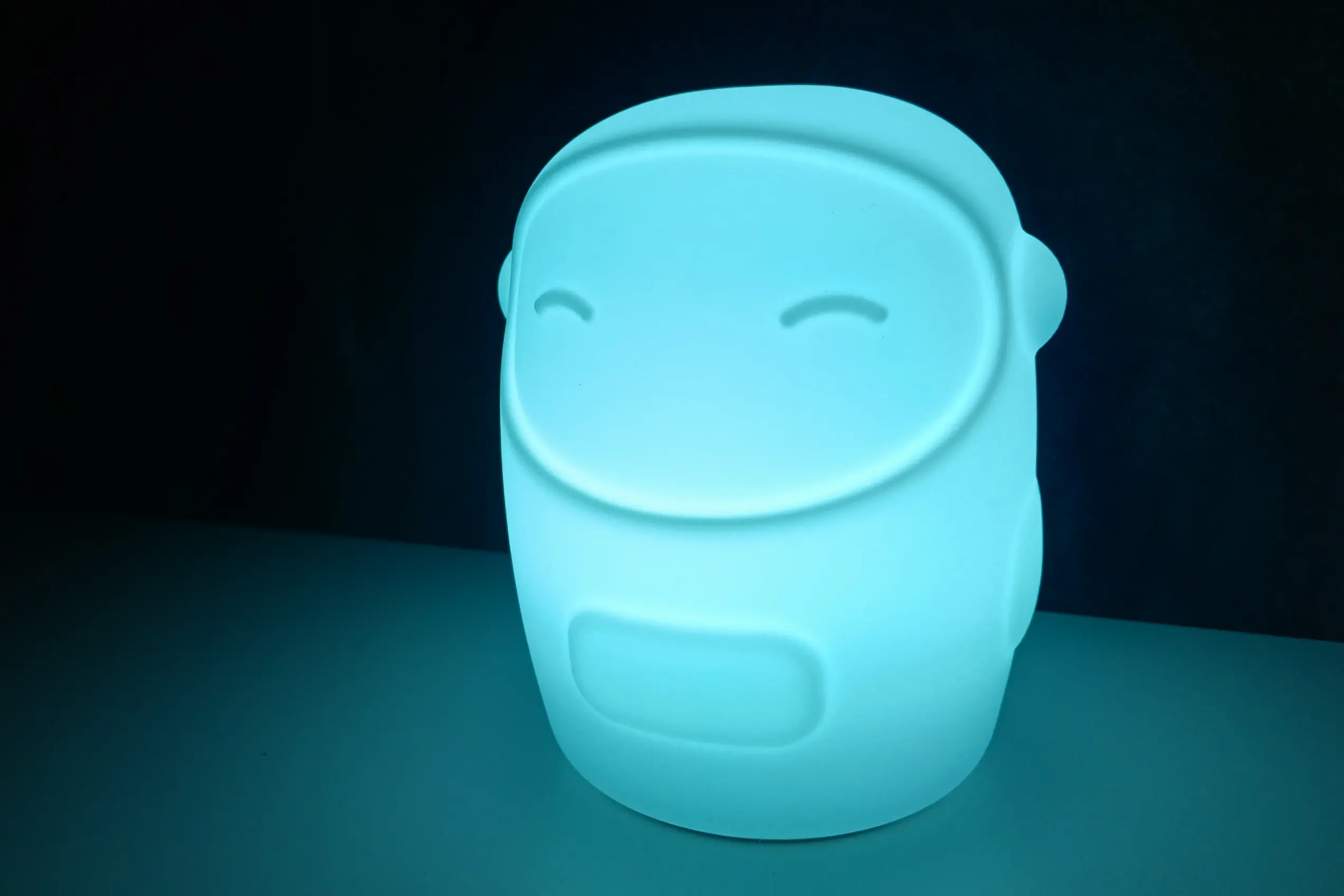 Тактильно ночник очень приятный: он мягкий, гладкий, не скользит в ладонях. Корпус не пластиковый, а из пищевого силикона. Он безвредный и гипоаллергенный, так что можно не переживать, если ребенок попробует его на зуб. Ночник также можно без опаски мять, растягивать или даже ронять (последнее проверено Антоном).