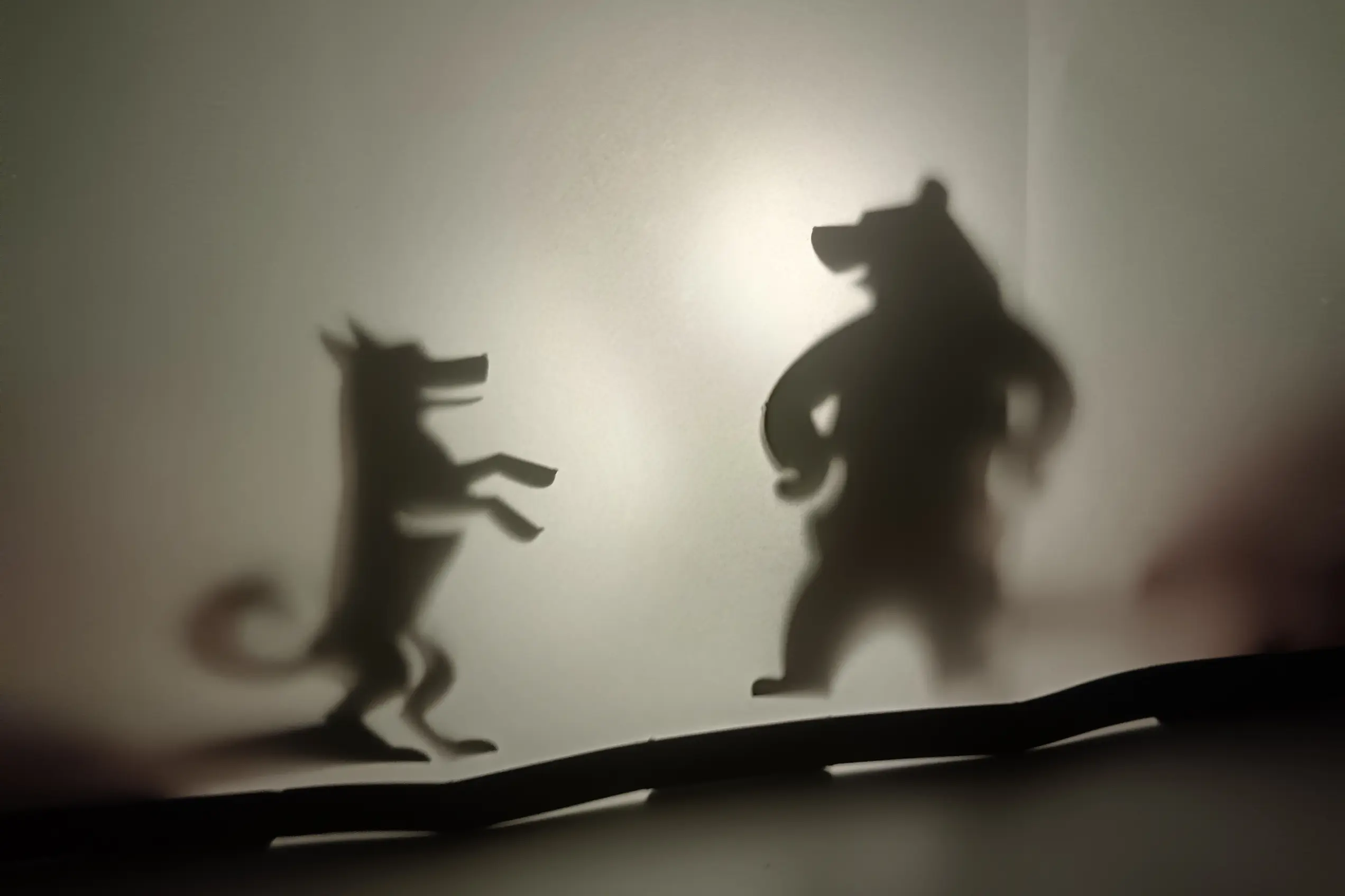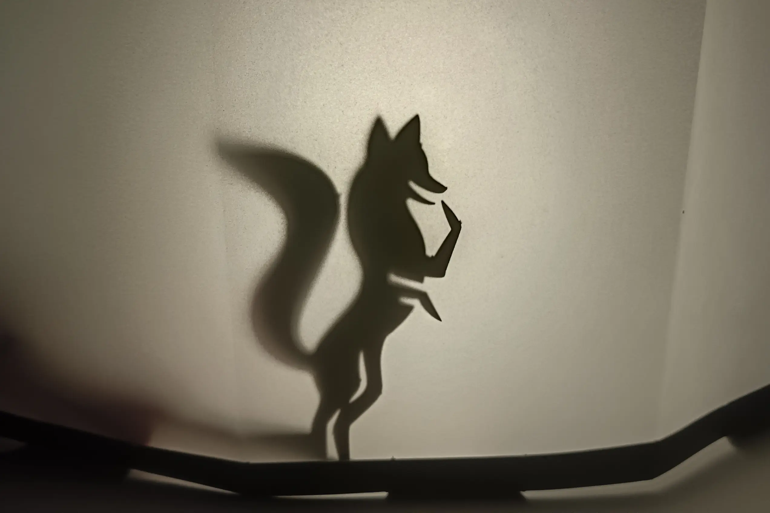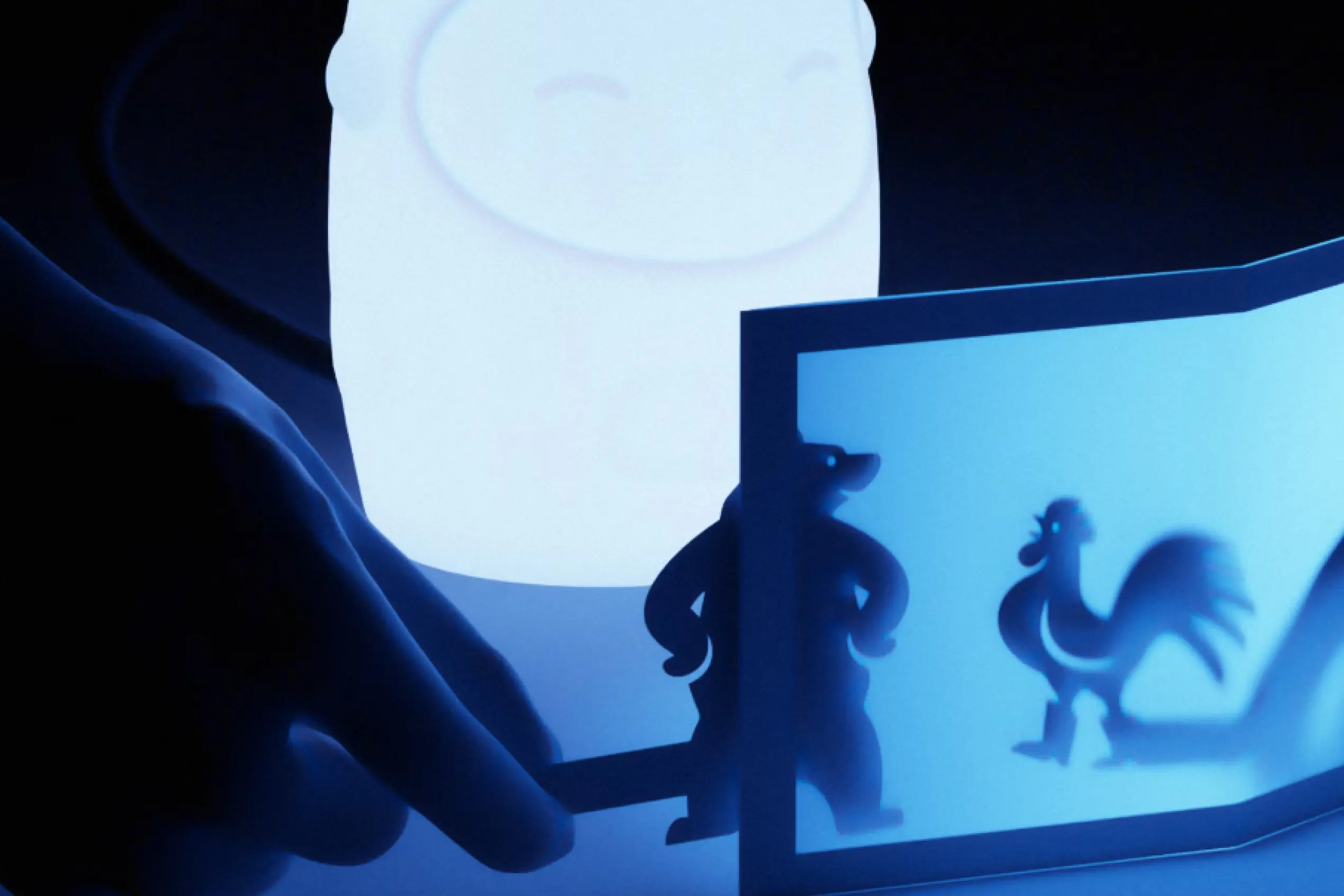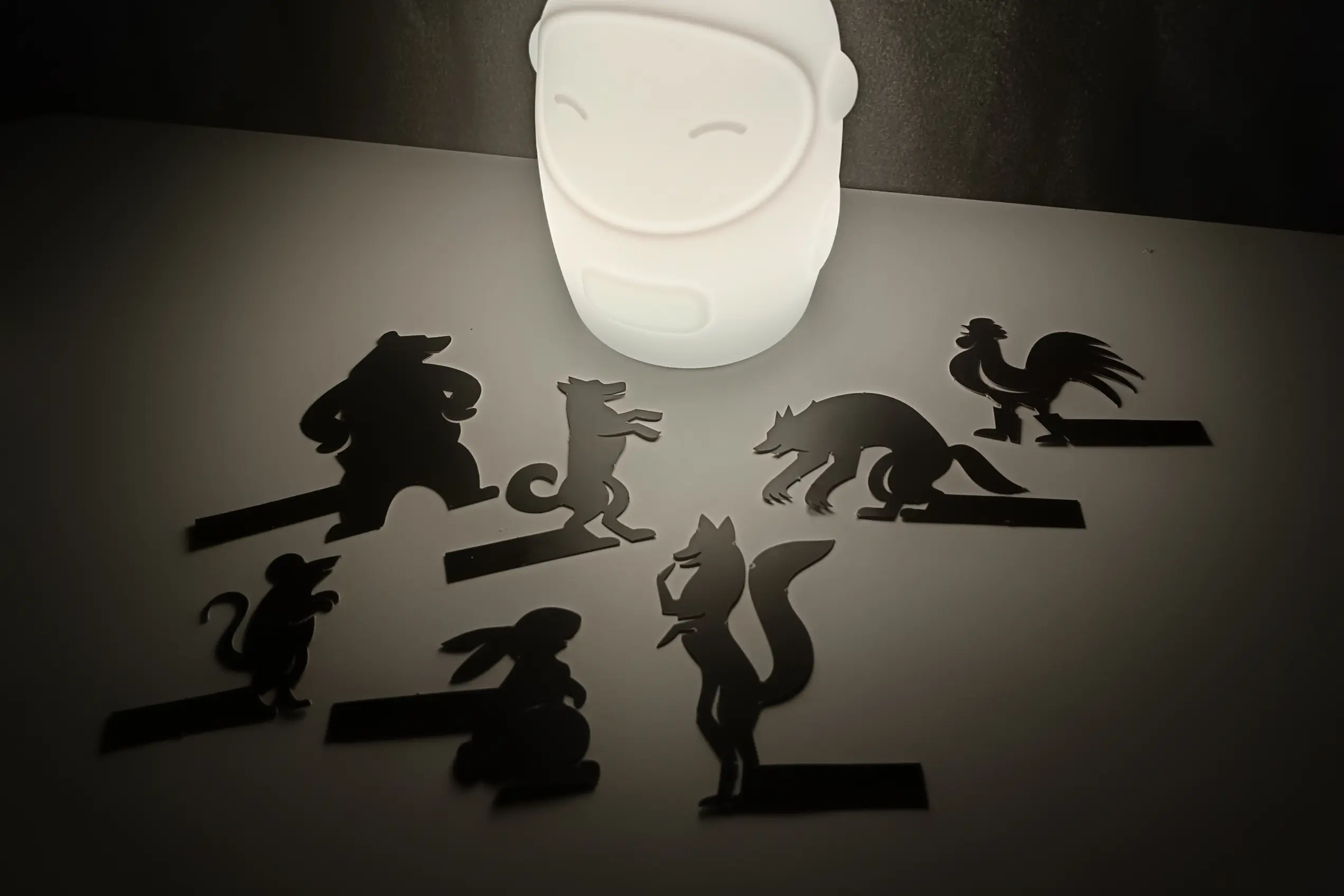 На коробке описаны несколько сценариев взаимодействия с ночником, так что и без инструкции примерно понятно, что интересного можно с ним придумать. Антон первым делом потянулся к «Театру Теней». В наборе — фигурки-трафареты из плотного картона и полупрозрачная ширма, выполняющая роль экрана. Все это мы опробуем в деле чуть позже — благо для маленького тестировщика уже заготовлена сказка, которую нам с ним предстоит разыграть.