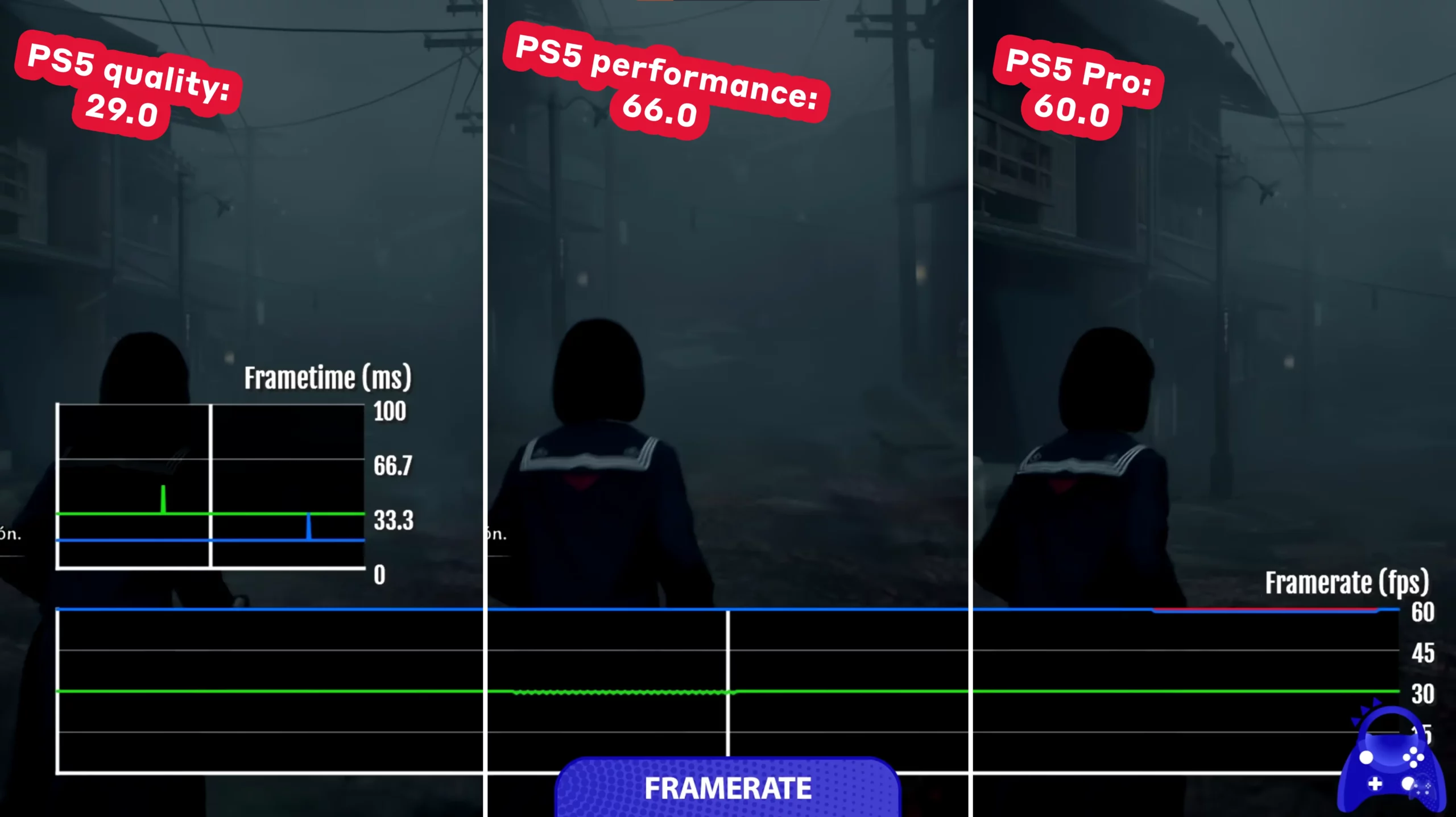 Если отойти от сухих цифр характеристик чипов и взглянуть на реальную производительность, то получается, что PS5 Pro (как актуальная, так и CFI-7121) выдает более качественную картинку со стабильными 60 fps. В пример можно привести недавно вышедший проект Konami — Silent Hill f.