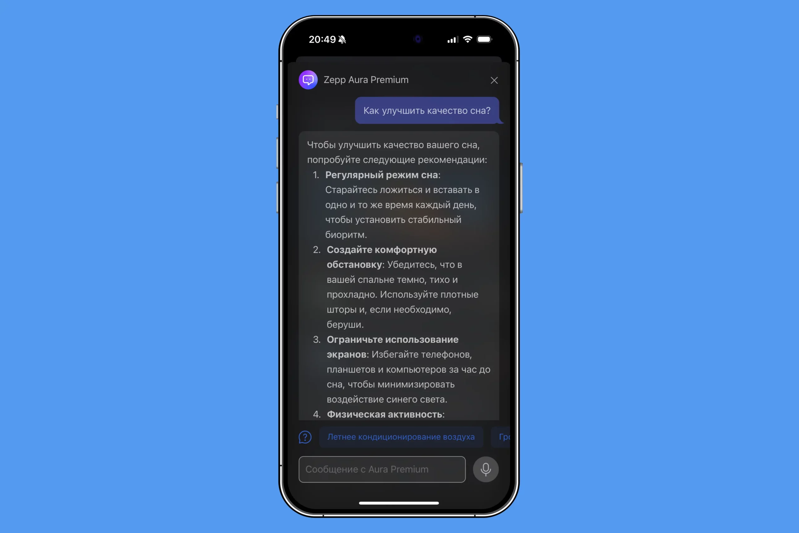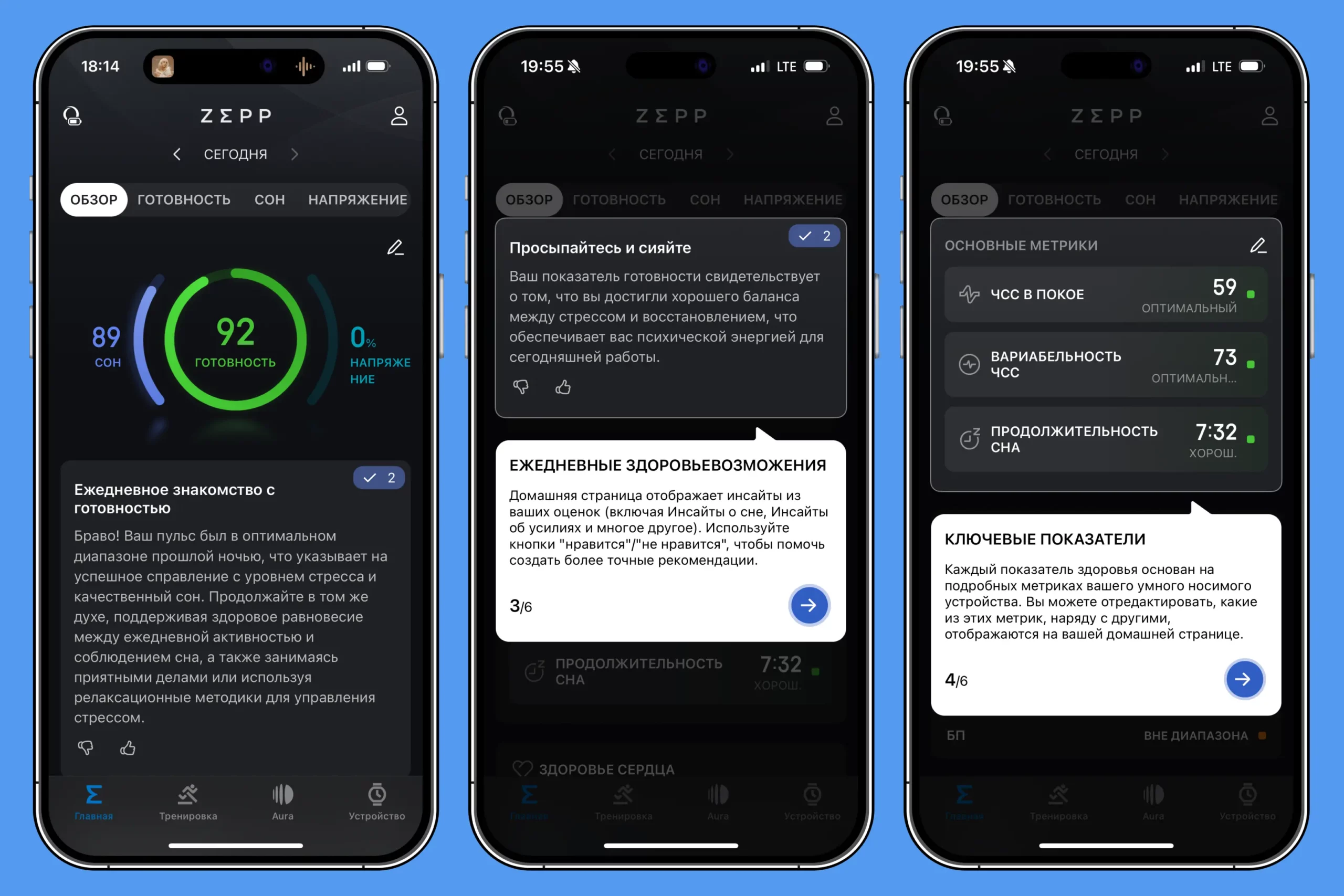 Часть функций приложения доступна в деморежиме. Для полного функционала нужна подписка Zepp Aura. К счастью, активируется она бесплатно, а истекает в 2099 году. Думаю, что за это время мы все успеем наладить свой сон.