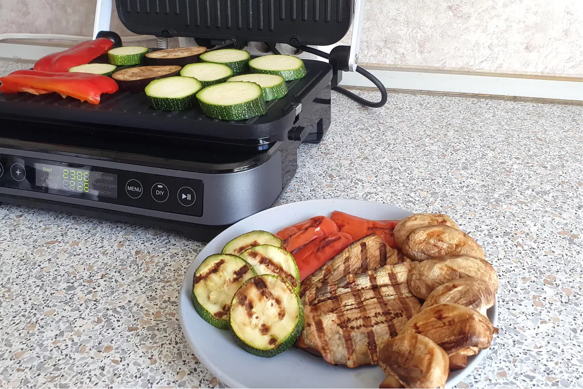 Благодаря этому устройству я наконец открыла для себя полноценную готовку без масла. Это, пожалуй, главный бонус. На обычной антипригарной сковороде лично мне сложно обойтись совсем без масла. А тут — пожалуйста! Выкладывай продукты прямо на гриль, и через пару минут все готово, причем с минимальным количеством калорий.