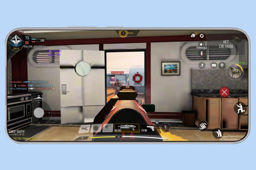 На практике ничего не тормозит и не лагает. Приложения устанавливаются и стартуют быстро, игры запускаются на высоких и максимальных настройках. Genshin Impact идет на максималках при стабильных 59−60 fps, как и Call Of Duty Mobile. Если в Call Of Duty нужно поднять число кадров, придется установить «низкое» качество графики. Тогда будут стабильные 90 fps.