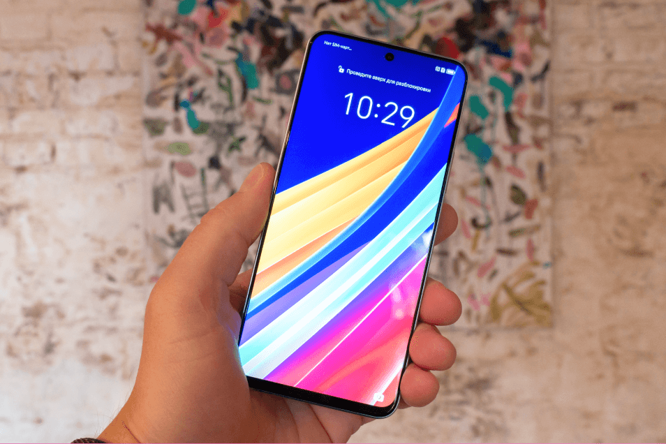 Матрица экрана произведена по технологии LTPS LCD, или проще говоря — IPS. Повышенная частота обновления 90 Гц делает отображение картинки плавным и гладким. Разглядеть разницу с новомодными 120 Гц получится не у всех. Разрешение 2388×1080 обеспечивает высокую плотность пикселей ~391 ppi, так что глаз не будет видеть отдельные точки изображения. Запас яркости достаточен для комфортной работы в помещениях или в тени. Разве что под прямыми лучами солнца экран будет тускнеть.