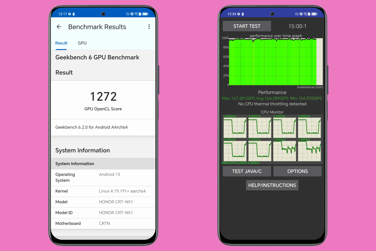 Результаты в синтетических тестах полностью соответствуют ожиданиям: цифры неплохие для среднего класса, хоть и далекие от современных флагманов. Кстати, незначительно повысить производительность процессора можно в настройках, выбрав «Производительный режим». Троттлинга, то есть падения мощности под нагрузкой, нет.