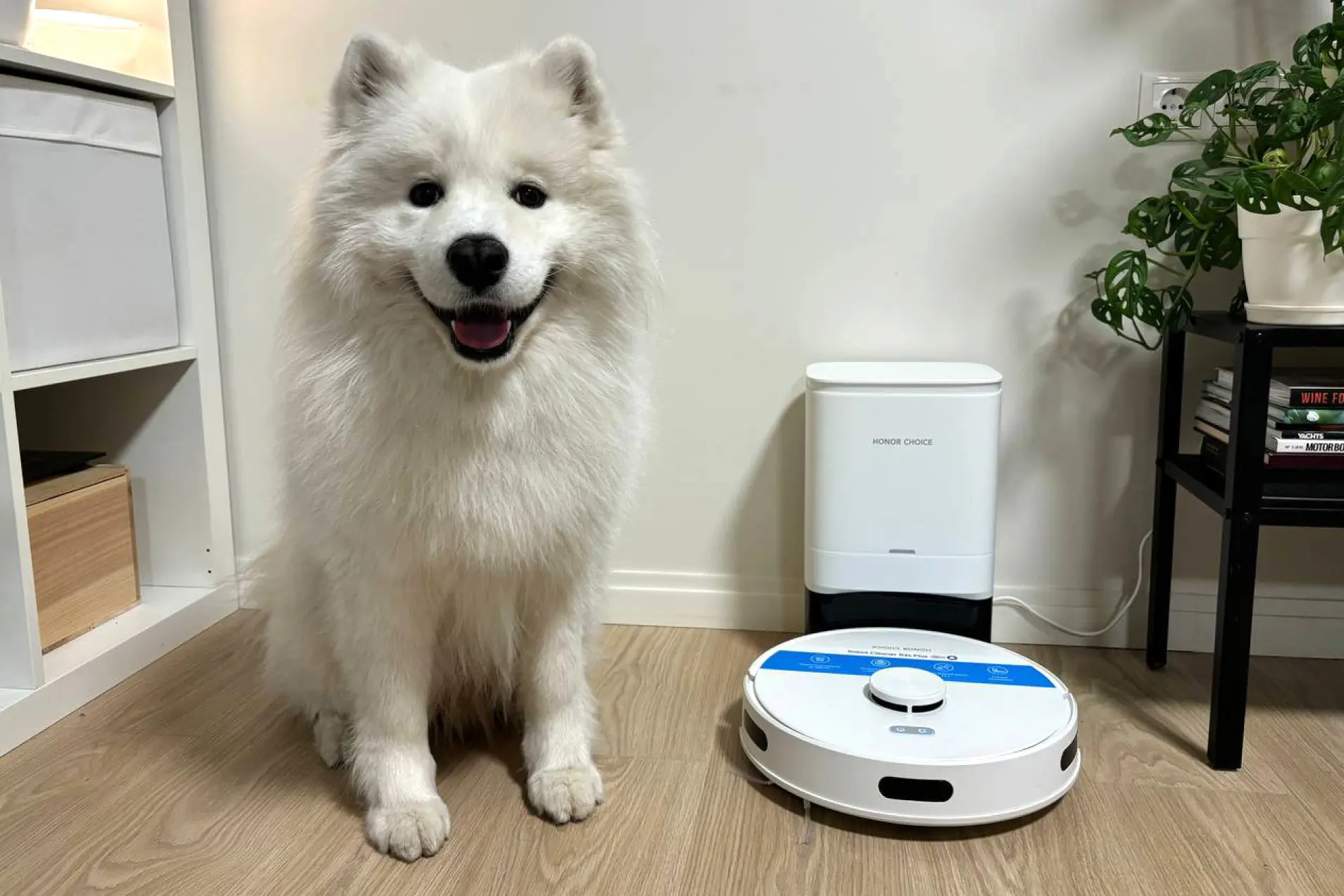 Мы хотели понять, насколько полезен будет робот-пылесос в хозяйстве, поэтому устроили тест-драйв. Решили проверить, кто победит в противостоянии — HONOR Choice Robot Cleaner R2s Plus или белый лохматый самоед, который активно линяет и гуляет два раза в день, постоянно принося домой тонны весенней грязи?