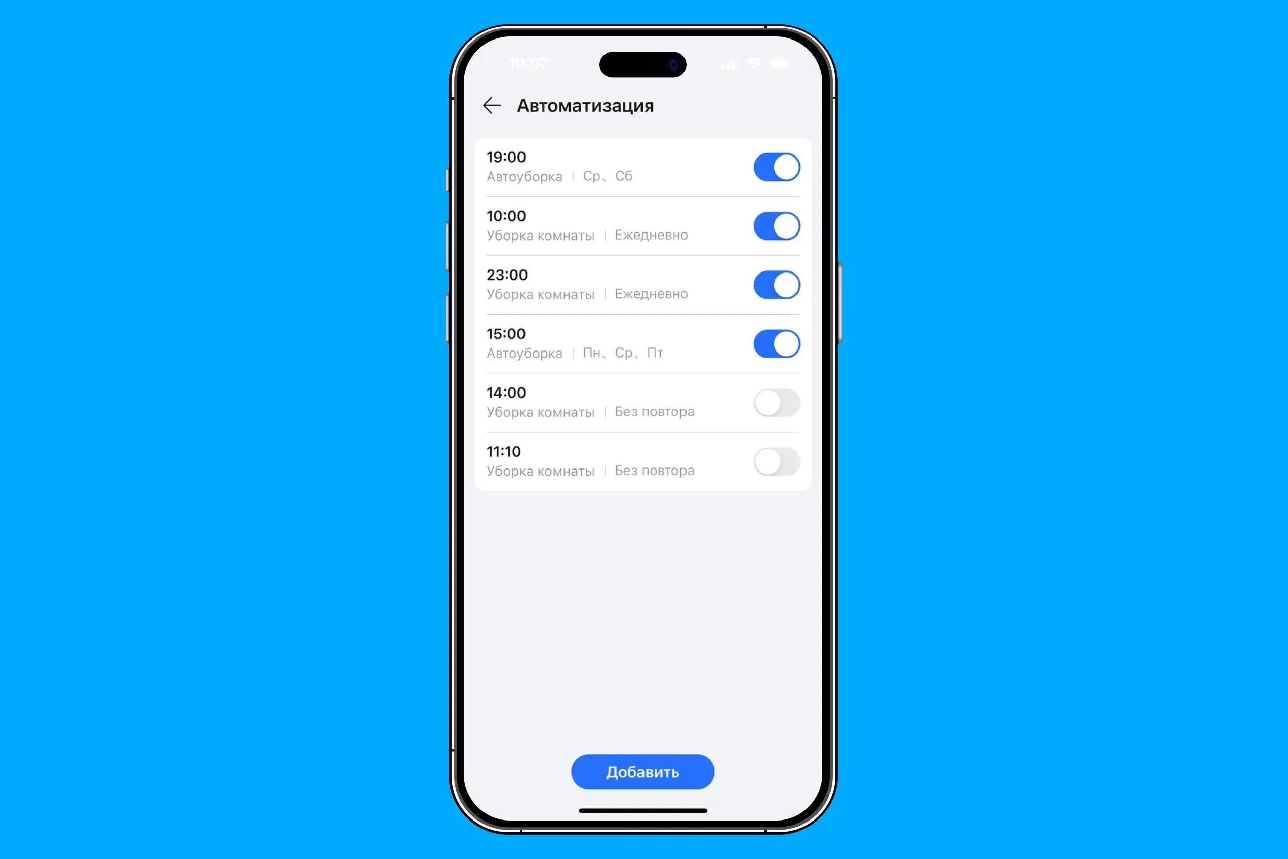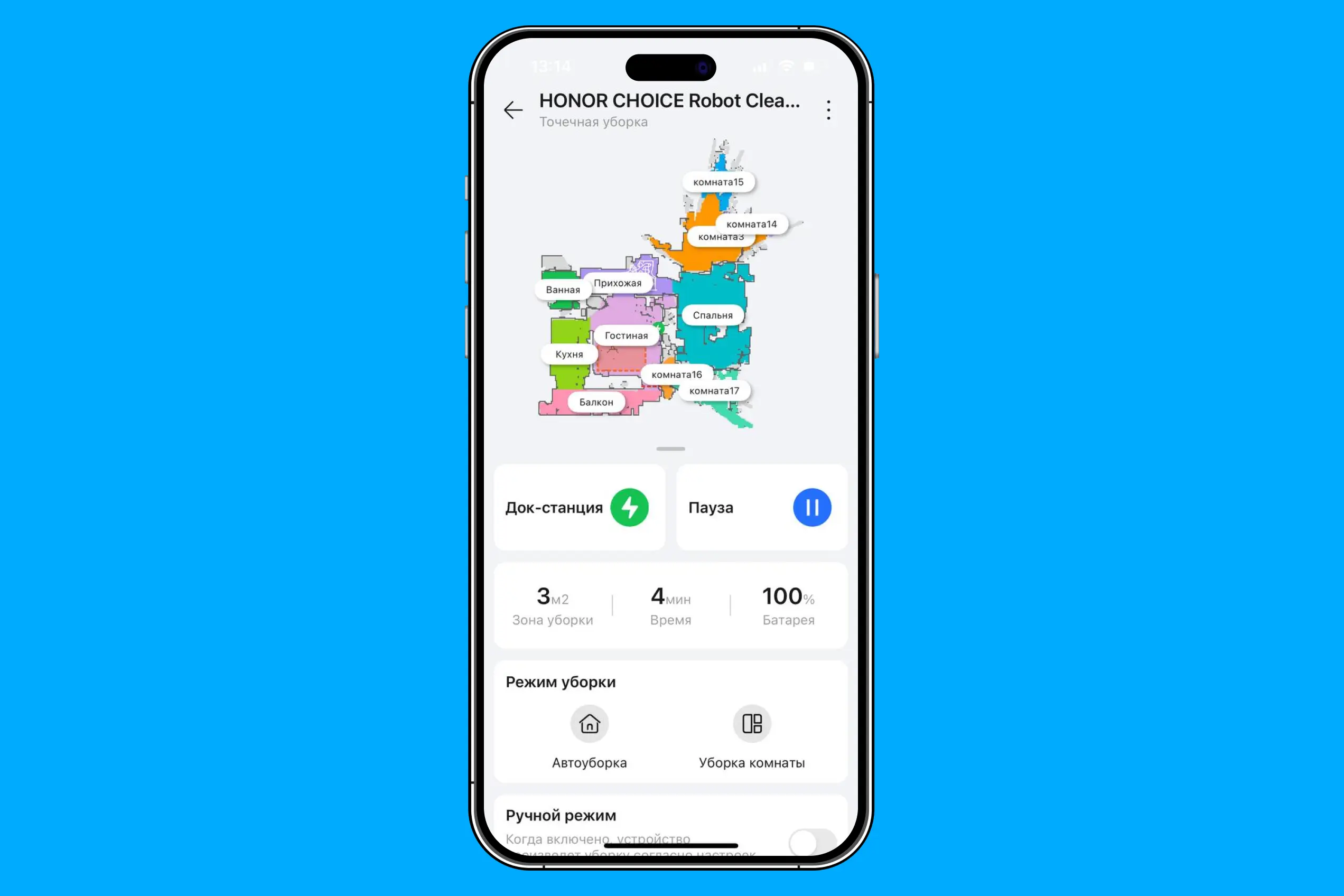 В приложении можно оптимизировать работу под любые ситуации, назначить каждое помещение или разделить его на отдельные зоны. Мы сразу настроили правила и режимы уборки для всех комнат, чтобы эффективно расходовать заряд пылесоса.