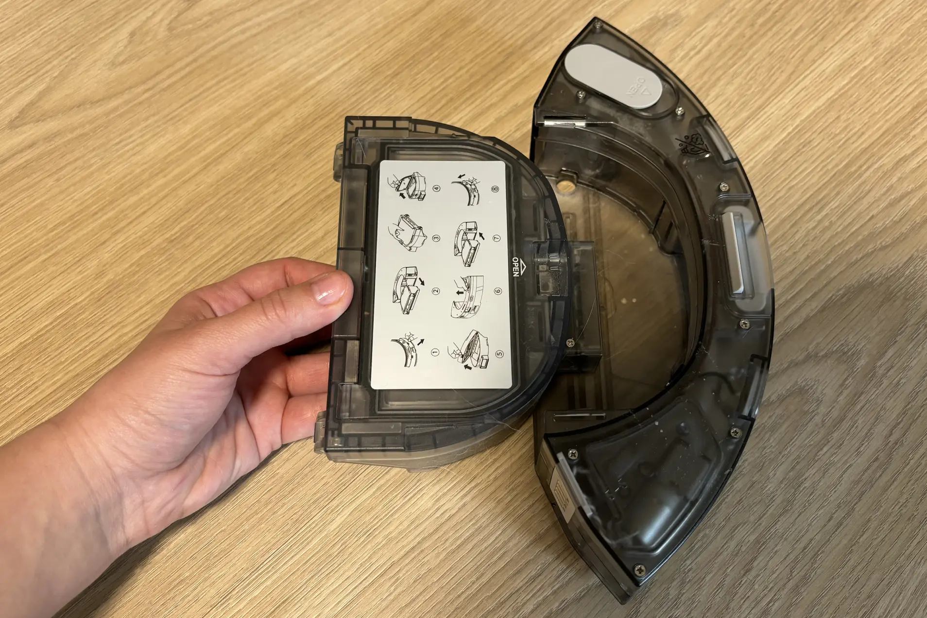 Как только уборка кончилась, робот заехал на станцию очистки. Это выглядело как стыковка ракеты с МКС — медленно и максимально выверенно. Далее начинается очистка контейнера. А вот это уже очень шумно. Пес сразу ушел подальше, хотя процесс очистки занял не более 15 секунд.