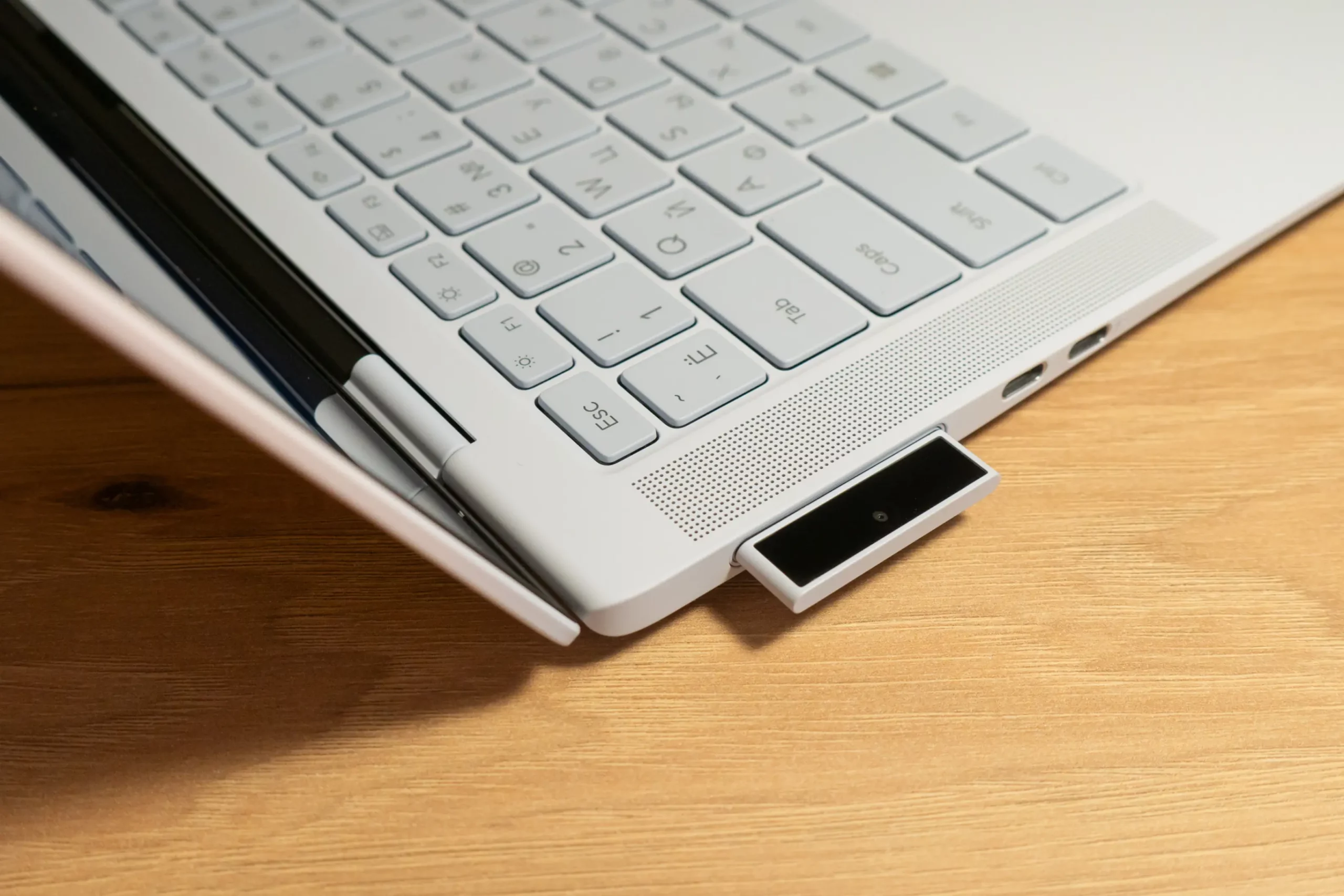 Спокойно, работа на удаленке в безопасности: вебка у ноутбука есть. Просто она спрятана внутри корпуса на магнитном креплении. Нажимаем, извлекаем, крепим на магните к верхней крышке — вуаля, MagicBook Art 14 готов к созвонам! Кстати, камера весьма неплохая, с честным Full HD разрешением.