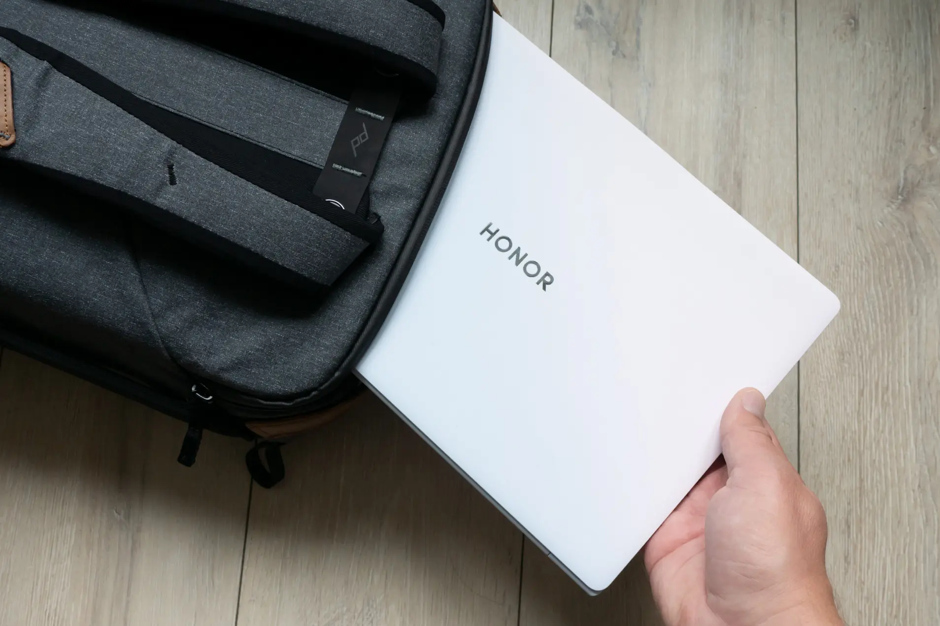 Вес MagicBook Art 14 — всего 1030 г. Это один из самых легких и компактных ноутбуков на рынке. В моем рюкзаке он просто не ощущается. Если взять с собой немного вещей, то сразу и не определить: ноутбук с тобой или забыт дома.