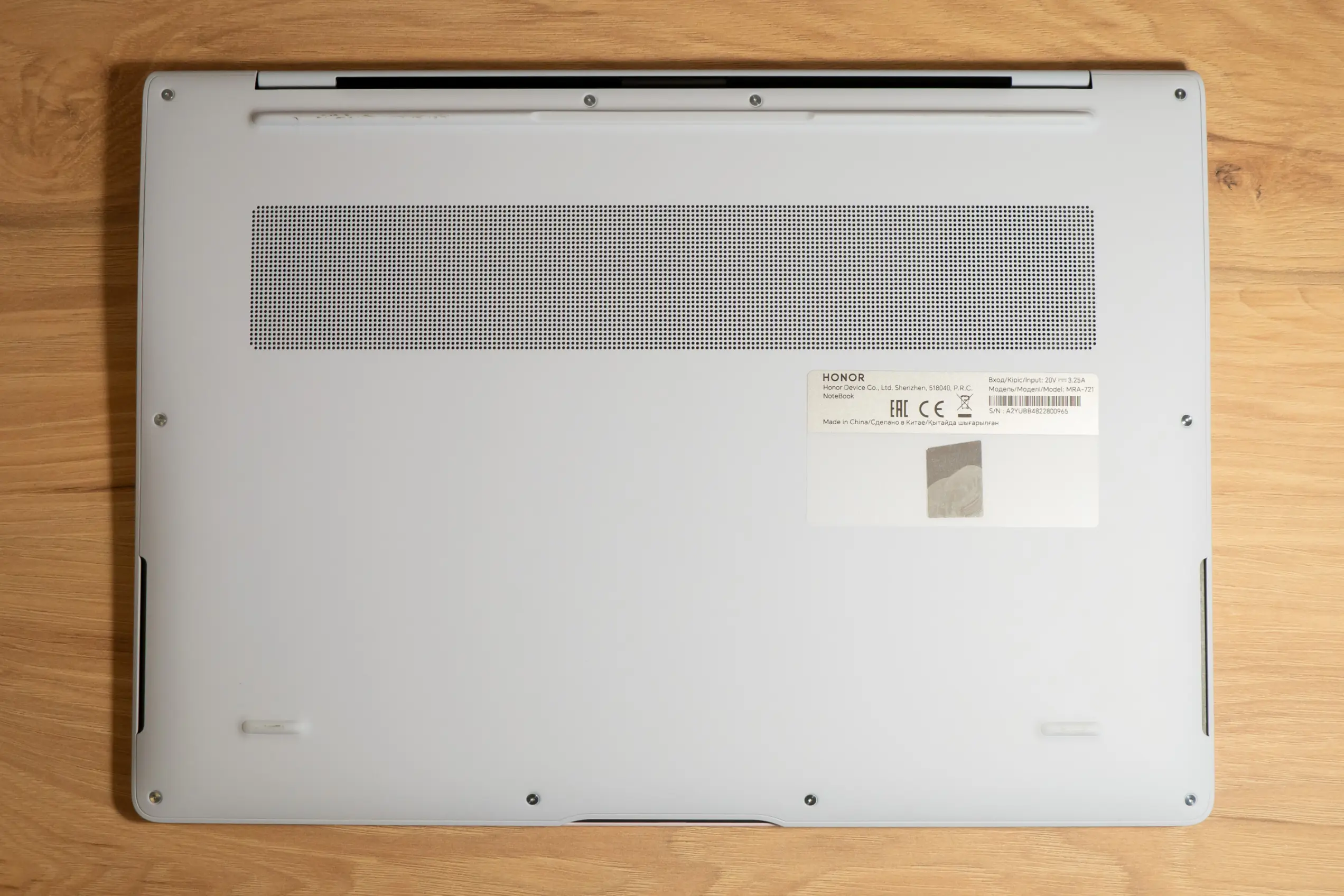 Можно ли было сделать его еще меньше? Вряд ли. Потому что полезная площадь экрана у HONOR MagicBook Art 14 составляет 97%. Его создателям даже пришлось убрать из верхней рамки экрана веб-камеру, а микрофоны переместить на нижнюю часть корпуса.