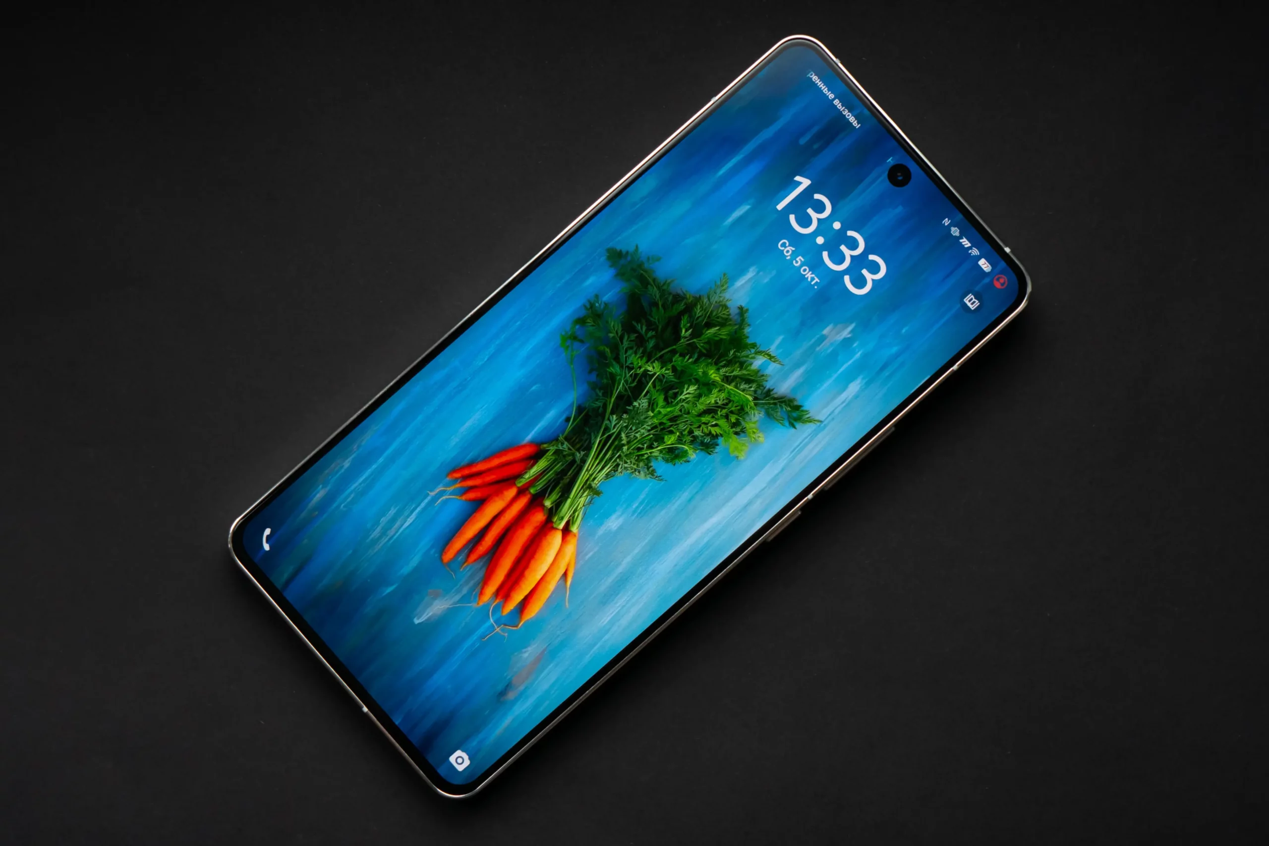 Экран у iQOO 12 плоский: никаких закругленных или водопадных краев — все предельно функционально и строго. Рамки тонкие, нижняя чуть-чуть шире остальных, что несколько непривычно для флагманского сегмента.