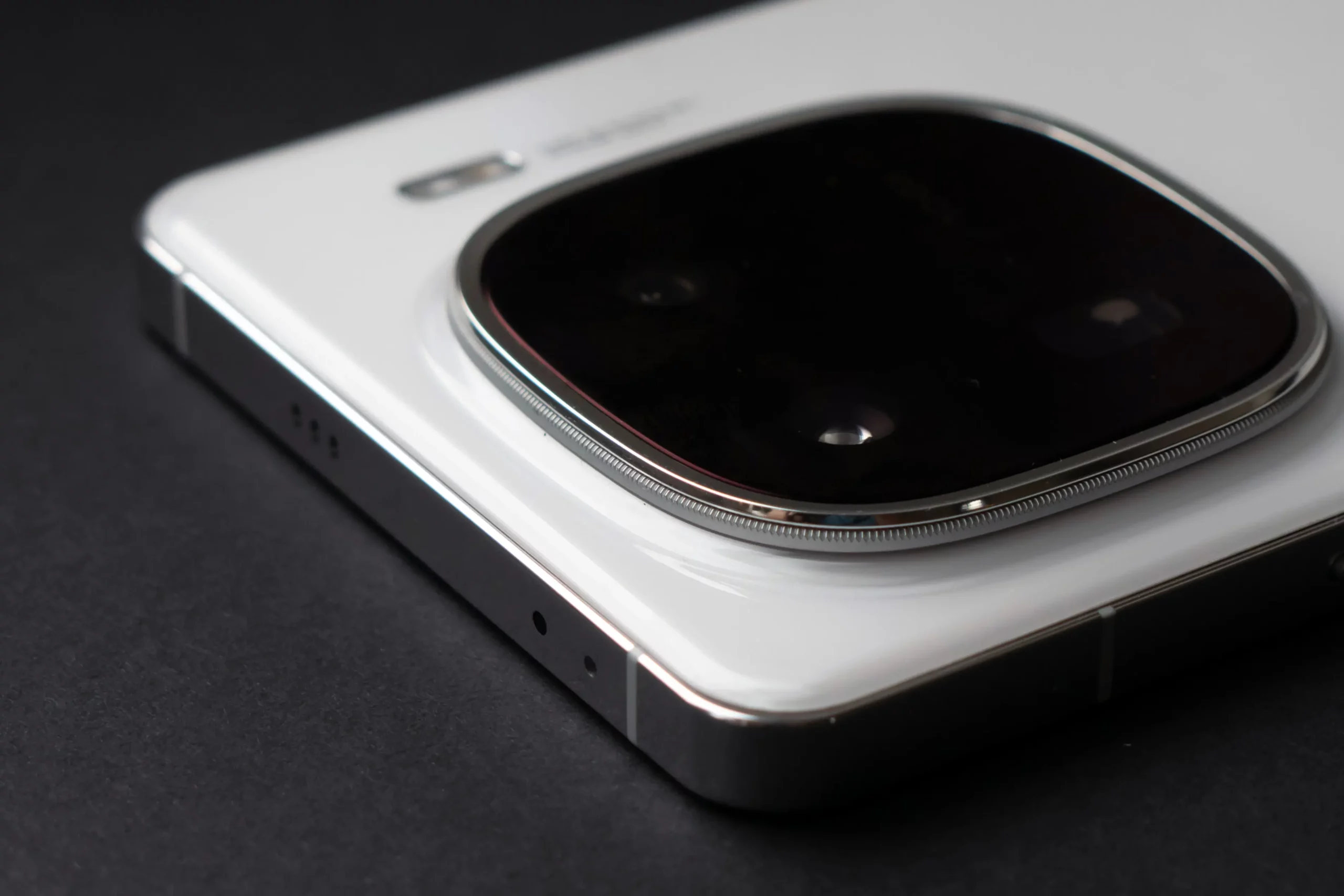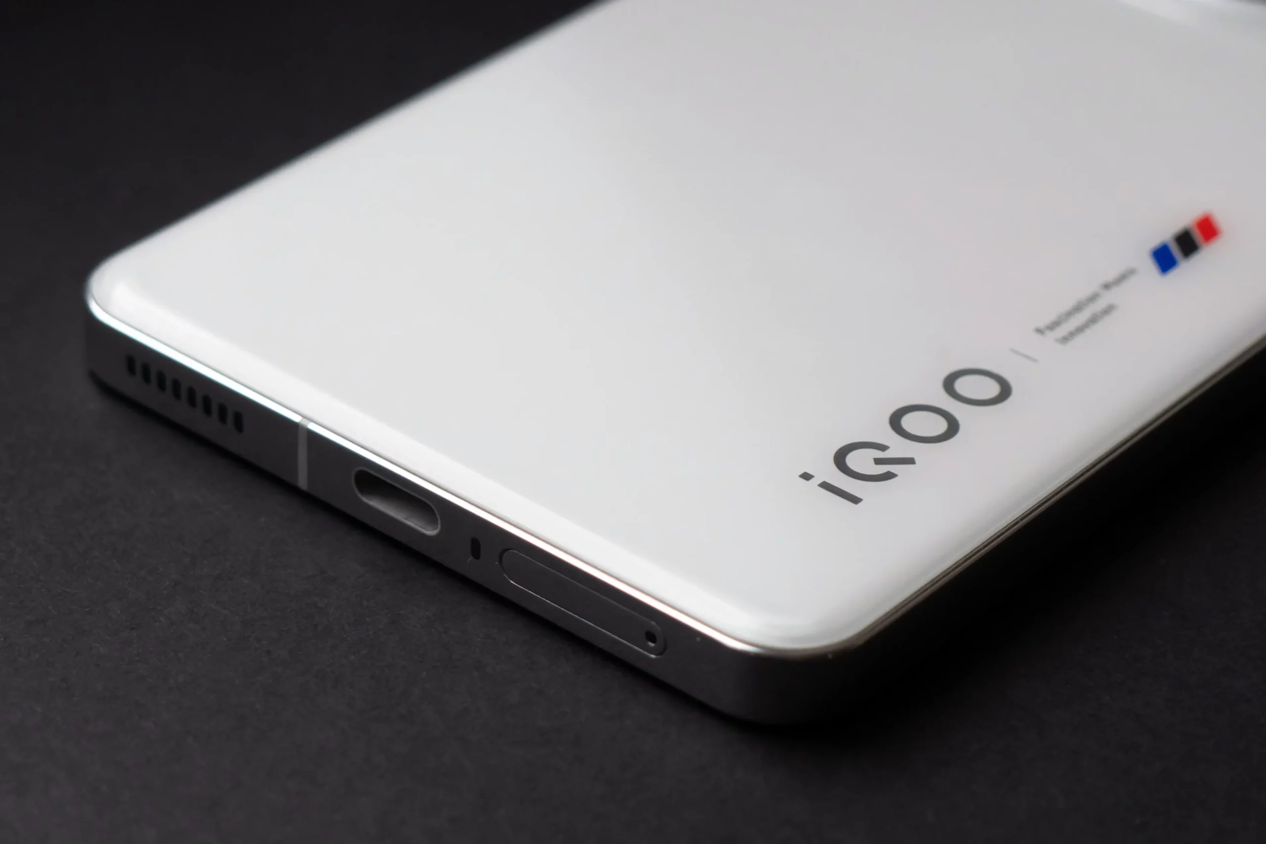 Задняя панель выполнена из глянцевого белого стекла. Отпечатки и разводы на нем остаются, но легко удаляются салфеткой. Боковая рамка тоже маркая, потому что сделана из металла, что является большой редкостью в 2024 году и однозначно указывает на высокий статус устройства. Тактильные ощущения от холодной рамки и стекла задней панели действительно отличаются от того, что испытываешь от бюджетных устройств. iQOO 12 воспринимается солиднее и премиальнее моделей среднего класса.