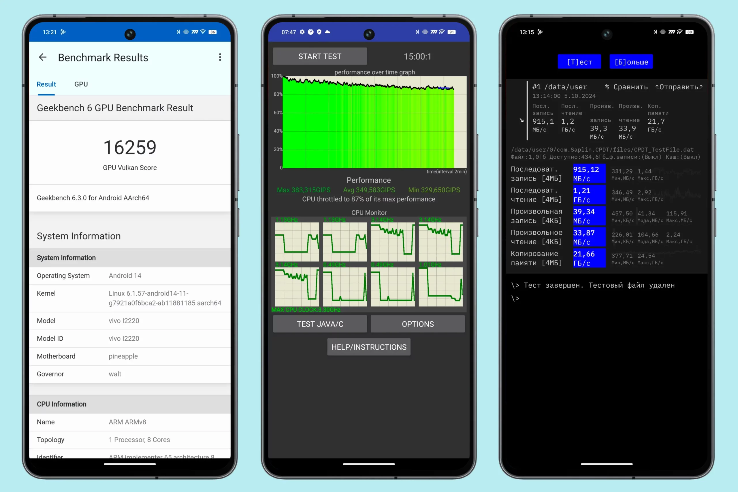 Из неочевидных плюсов отмечаем скорость встроенного накопителя и низкий процент троттлинга процессора под длительной нагрузкой. Все это — залог стабильной работы даже самых тяжелых приложений и игр. Начинка iQOO 12 — одна из самых мощных на рынке.
