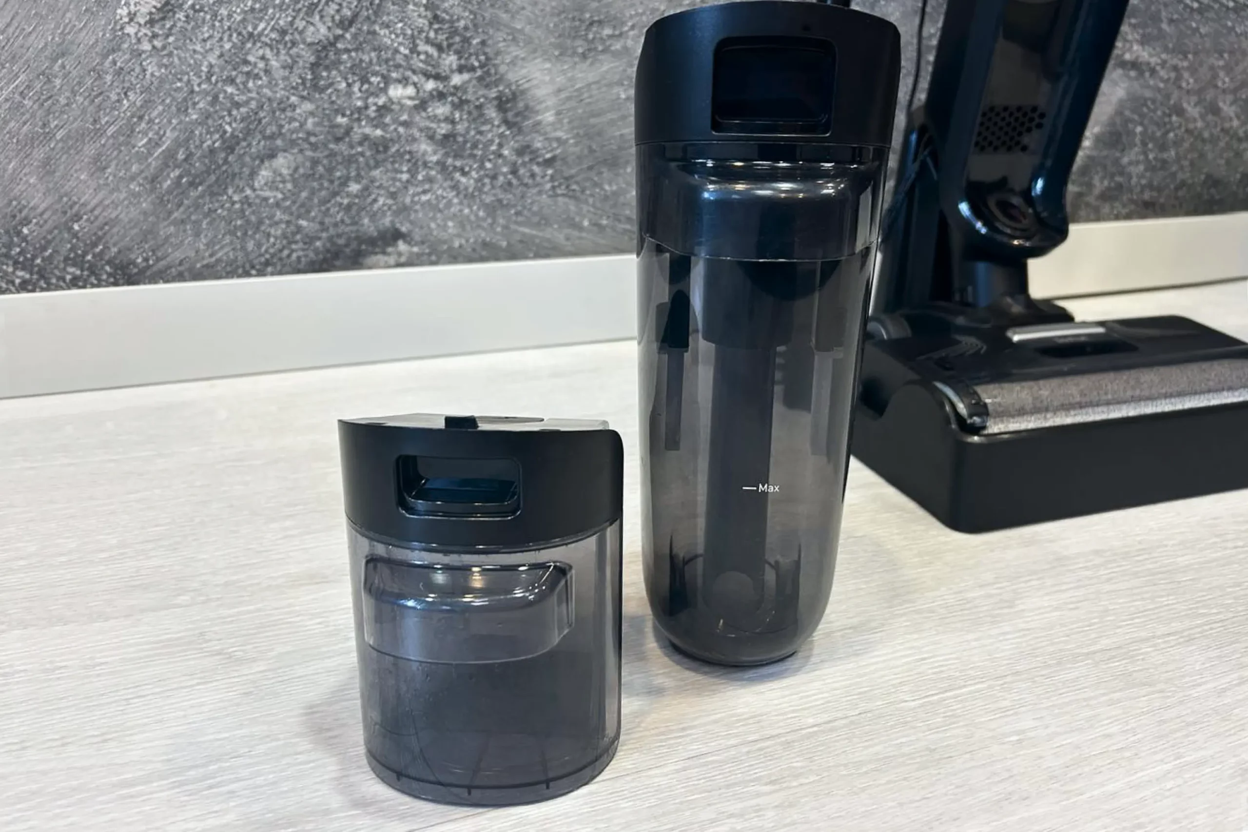 У пылесоса 2 контейнера. Верхний — для чистой, нижний — для грязной воды с мусором. Заливать можно обычную воду из-под крана (температурой 10-50°).