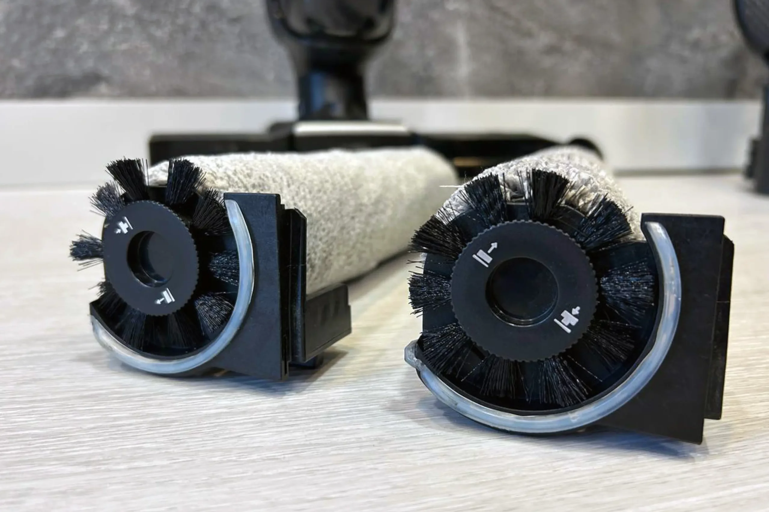 Очень понравилось, что у насадки, куда вставляется ролик, нет боковой рамки. Ее можно подвести вплотную к стене. Но боковая щетка есть только с одной стороны, и для мытья вдоль плинтуса, особенно если там есть какие-то пятна, нужно разворачивать пылесос.