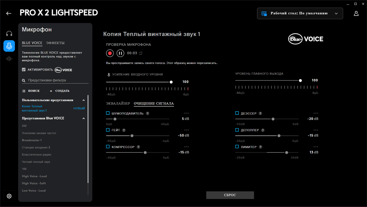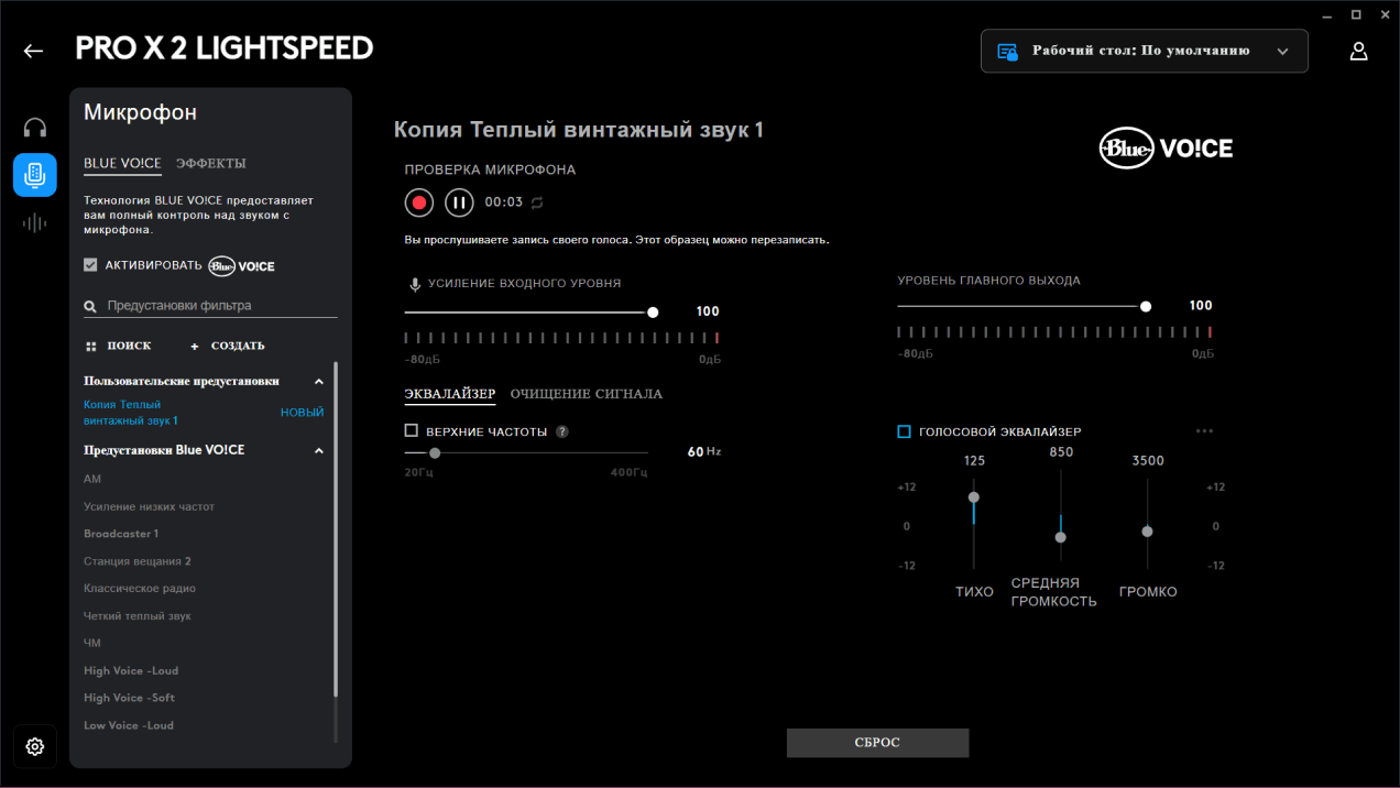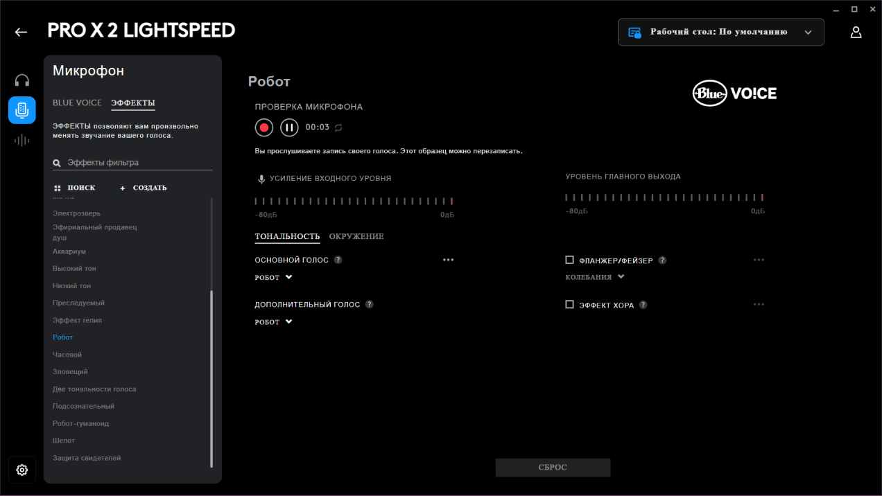 Все слабые места компактного микрофона полностью перекрываются возможностями обработки. Технология Blue VO!CE позволяет очень гибко оптимизировать звук. Кроме того, есть эффекты в реальном времени: хочешь — сделай голос инопланетянина, хочешь — монстра. Микрофон отключается физической кнопкой на левой чашке наушника.