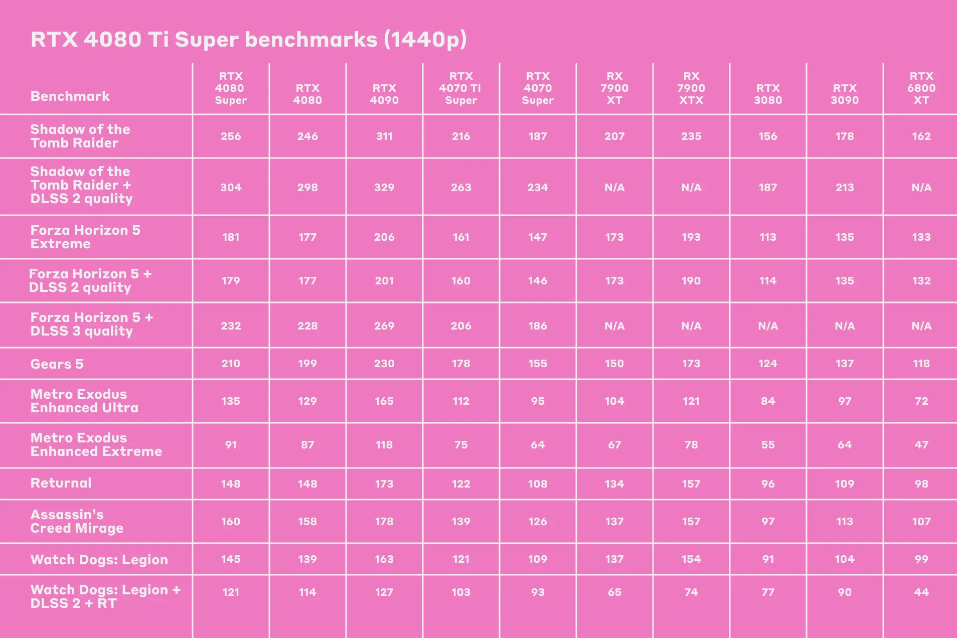 Forza Horizon 5 показывает средний фреймрейт на 181 FPS, а базовая RTX 4080 — 177 FPS. Относительно большой разрыв оказался в Gears 5 — 210 FPS против 199 FPS, однако показатели очень высокие в обоих случаях, и разница в основном видна только на бумаге. Что интересно, Returnal выдает одинаковый показатель в обоих случаях — 148 кадров в секунду, а хуже всего дела обстоят с Metro Exodus — на самых высоких настройках графики в 1440p она выдает с RTX 4080 Super всего 91 FPS против 87 FPS для базовой RTX 4080.