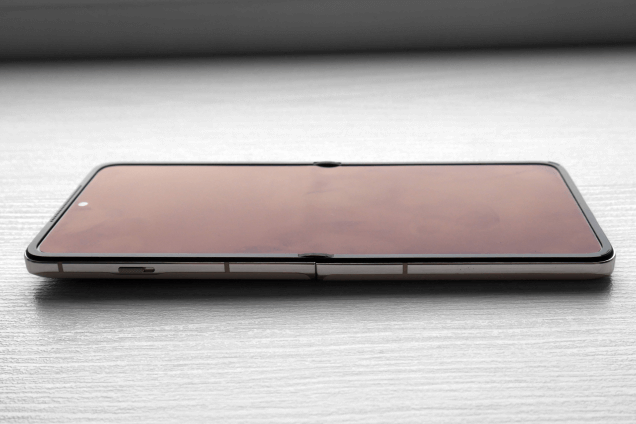 А теперь поговорим про складную составляющую. В OPPO Find N3 Flip используется петлеобразный шарнир Flexion Hinge, который выдерживает до миллиона складываний, при этом глубина залома в закрытом состоянии составляет всего 0,15 мм. Сама складка сгиба практически незаметна визуально, а на ощупь ее можно почувствовать, только если специально водить пальцем по центру экрана с этой целью.
