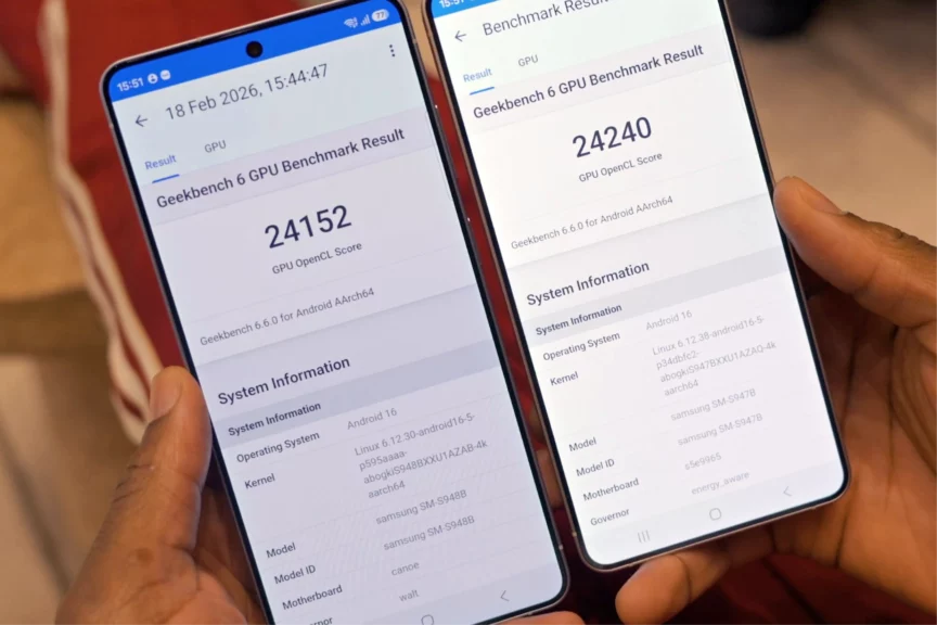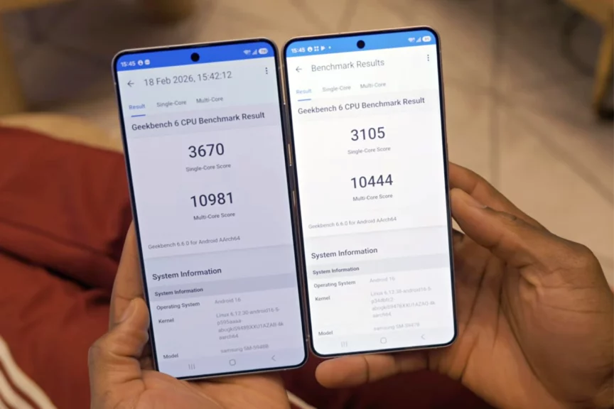 Exynos 2600 (в Россию поставляются смартфоны с этим чипом) — это первый 10-ядерный мобильный процессор компании, изготовленный по 2-нанометровому техпроцессу, который разгоняется до 3,8 ГГц. Если сравнивать его со Snapdragon, результаты замеров выглядят так: