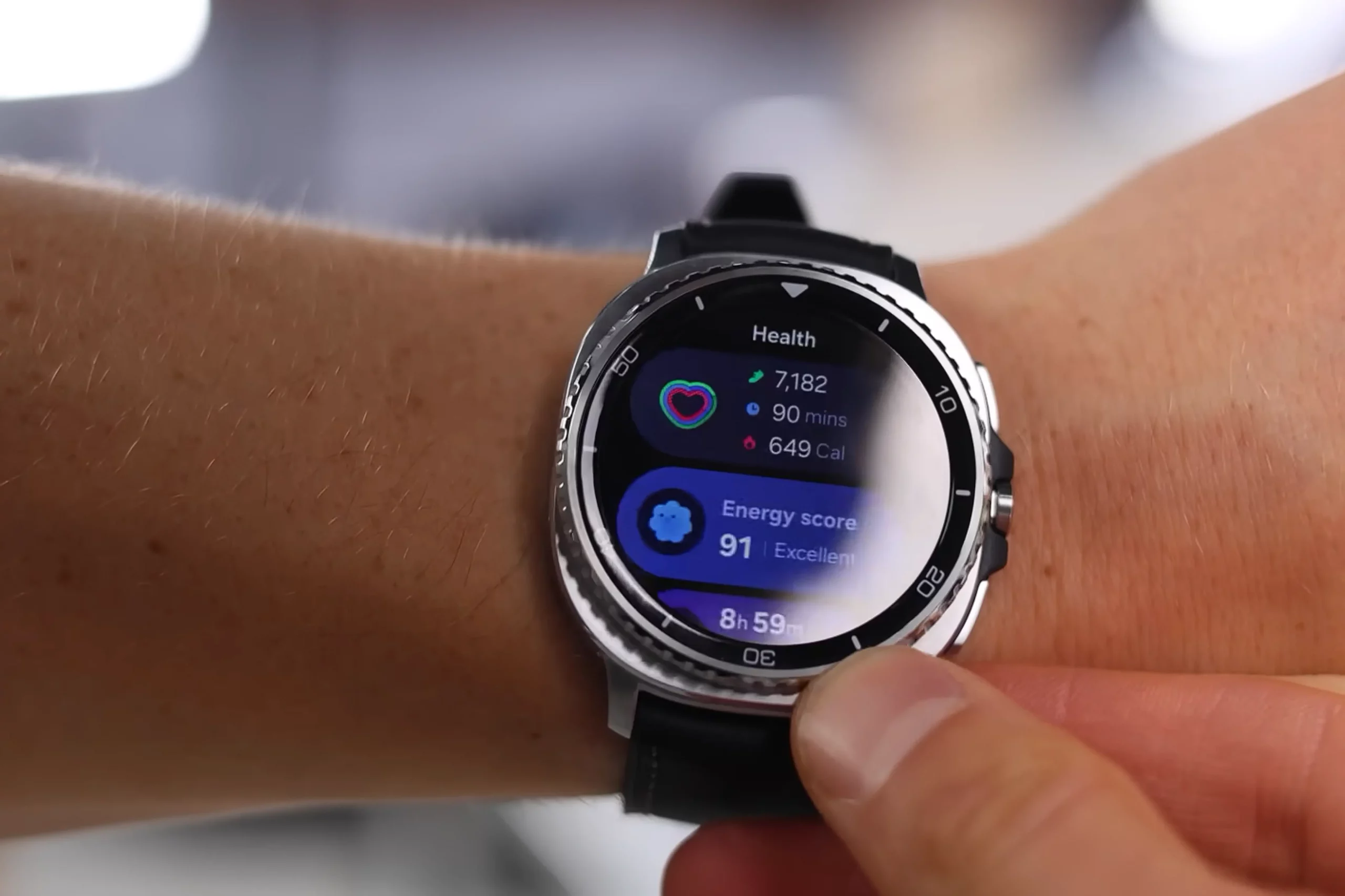 Galaxy Watch8 Classic, как понятно из названия, получили «классический» дизайн в духе брутальных мужских часов. Физически они больше и толще базовой модели. Однако диагональ экрана меньше: 1,34 дюйма против 1,47 дюйма у базовой модели. Разница в размерах дисплея связана с тем, что у Classic вокруг экрана есть вращающийся безель, который отвечает за прокрутку виджетов интерфейса. Фича удобная и дает тактильный отклик, которого часто не хватает в смарт-часах.
