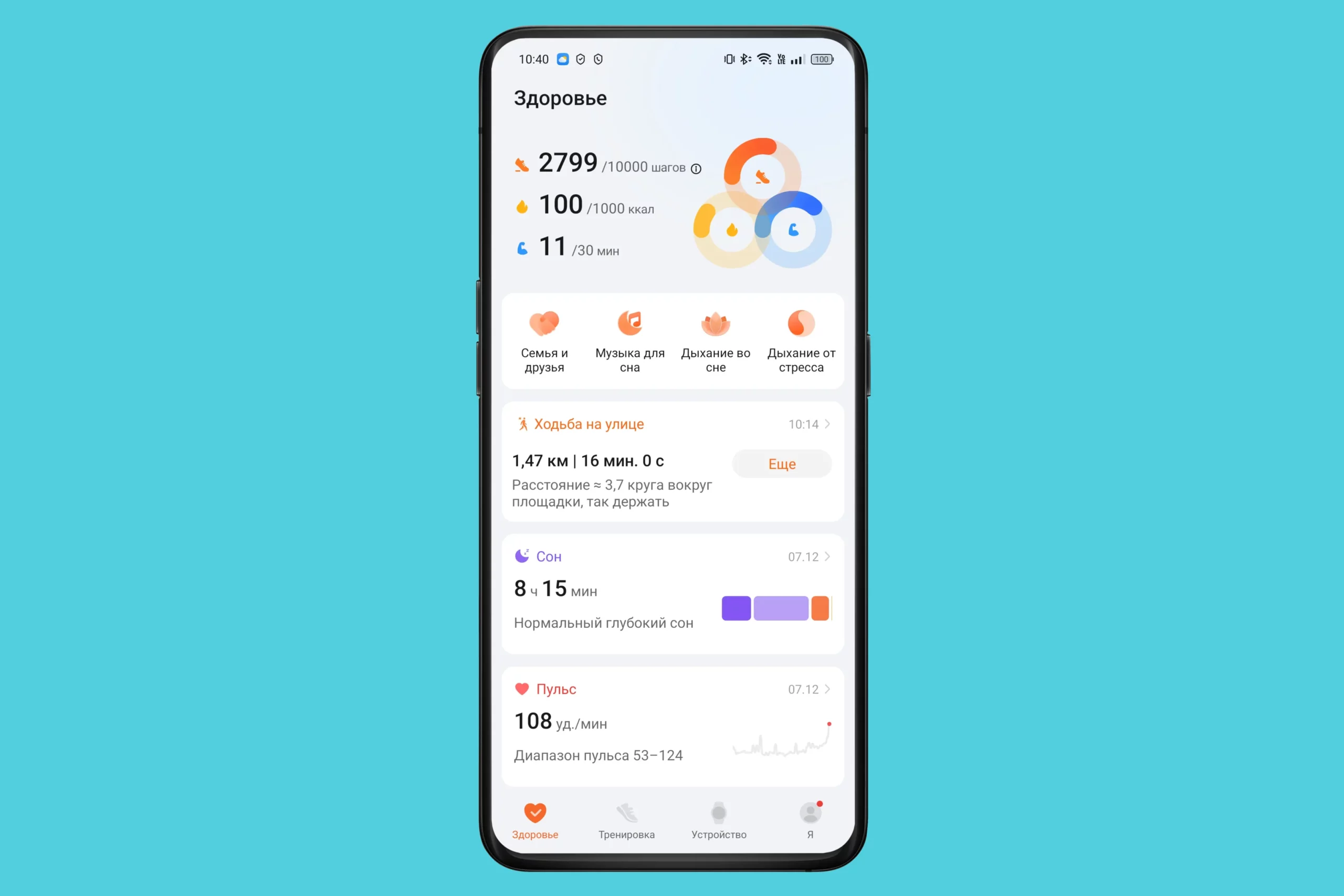 Вывод информации о повседневной активности реализован в виде колец здоровья — это уже стало привычным. За графический интерфейс разработчикам респект: все аккуратно, красиво, информативно и читаемо.