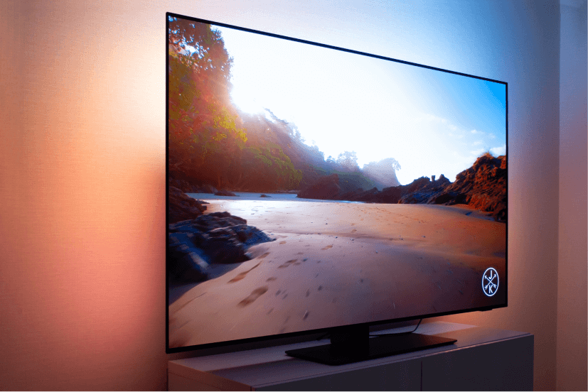 Philips 65'' OLED 808 построен на одной из самых современных OLED-матриц, обеспечивает превосходное качество изображения и может похвастаться совместимостью со многими современными форматами: различные спецификации HDR, имеет сертификацию IMAX, дружит с объемным звуком. Он отличается качественным звуком, но также способен работать с беспроводной акустикой DTS Play-Fi. Для любителей игр есть поддержка 120 Гц, синхронизация G-Sync, VRR и Freesync. А вишенкой на торте служит фирменная технология умной подсветки Ambilight, буквально выводящая изображение за рамки экрана.