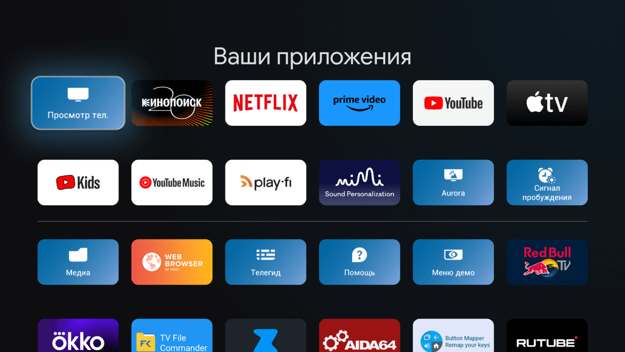 Внутри телевизора Google TV на Android 12 — платформа максимально гибкая, позволяющая поставить множество приложений. В том числе — все отечественные кинотеатры или Rutube.