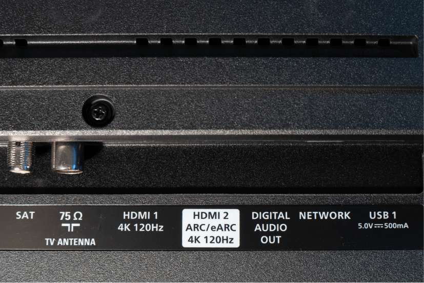 Из локальной медиатеки контент тоже можно воспроизводить. Для этого есть USB-разъемы, порт Ethernet и двухдиапазонный Wi-Fi. Для подключения сторонних источников сигнала предусмотрено сразу несколько HDMI, два из которых поддерживают 4K 120 Гц, а один — ARC/eARC. Интерфейсы ARC и eARC позволяют подключать различные устройства домашнего кинотеатра одним HDMI-проводом и управлять звуком с пульта телевизора. Это особенно актуально при подключении ресиверов и саундбаров.