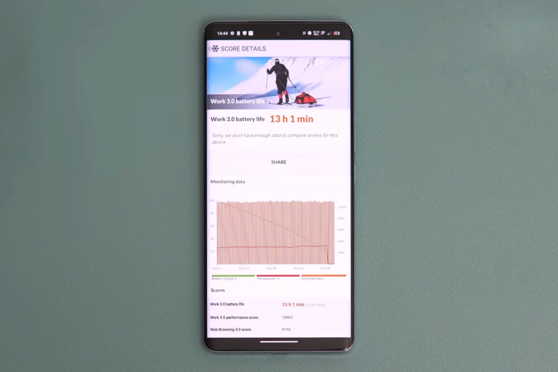 В vivo V30 производитель на 400 мА*ч увеличил емкость аккумулятора относительно предшественника. Благодаря батарее на 5000 мА*ч телефон без проблем «проживет» в течение всего рабочего дня при интенсивном использовании. Например, в популярном тесте на автономность PC Mark Work 3.0 смартфон проработал 13 часов и 1 минуту. Это уровень Redmi Note 13 Pro, а ведь vivo V30 более чем на 40% мощнее.