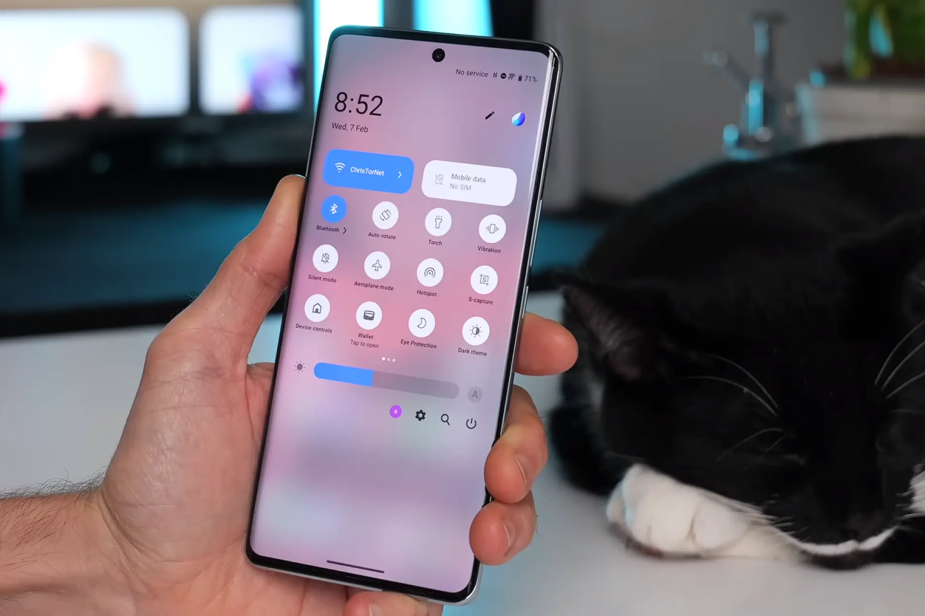 Экран в vivo V30 за счет AMOLED-матрицы поддерживает полный цветовой спектр DCI-P3. Отлично передаются все цвета и оттенки, что делает картинку насыщенной. Для использования ночью предусмотрен режим «Защита глаз», снижающий интенсивность синего излучения. Пиковая яркость дисплея, по данным производителя, достигает 2800 нит, но такой яркости можно добиться разве что при очень сильном освещении, например в солнечную погоду. В нормальных условиях яркость регулируется до 1200 нит.