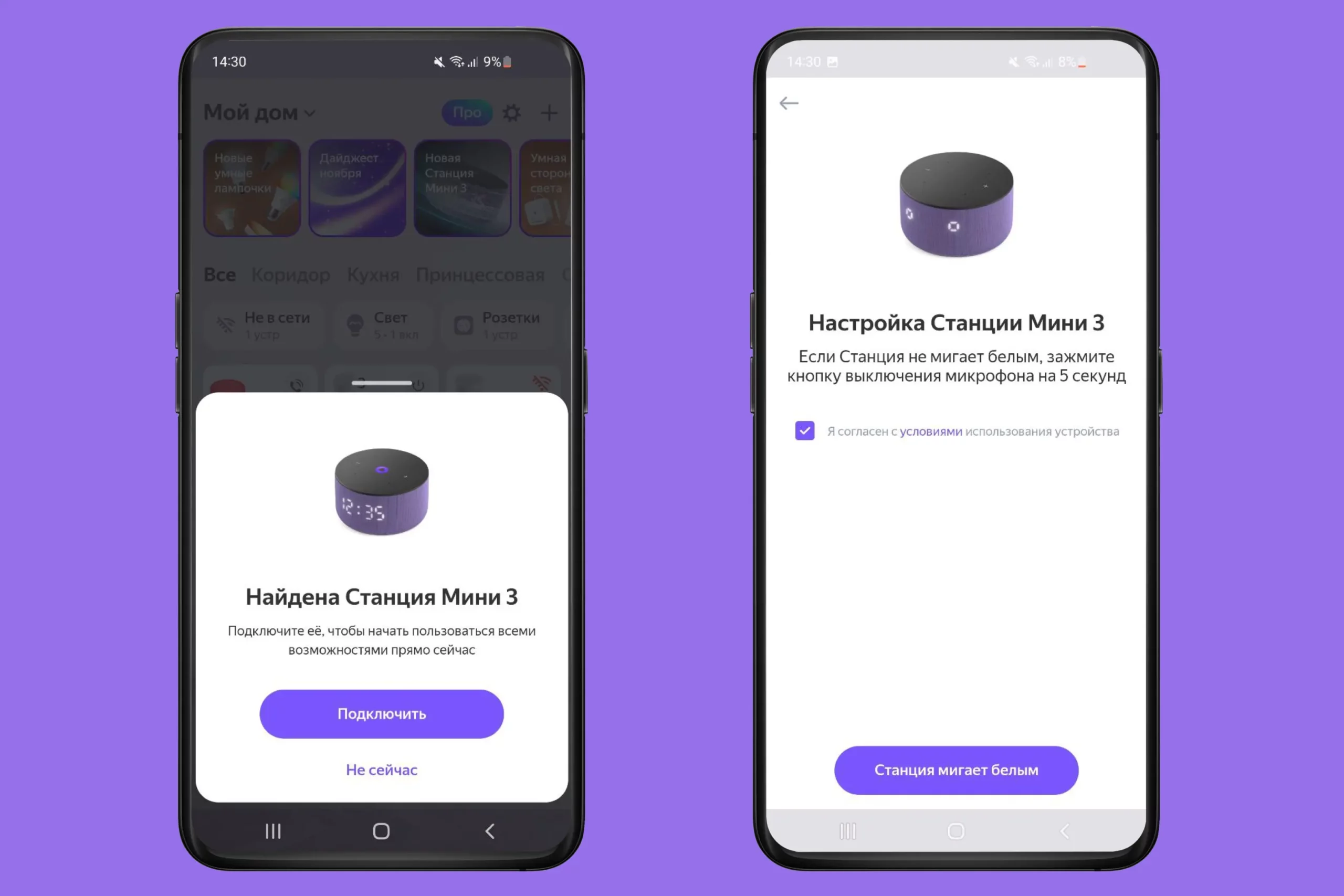 Включите колонку в розетку, откройте приложение «Дом с Алисой», вы увидите всплывающее окошко с предложением подключиться.