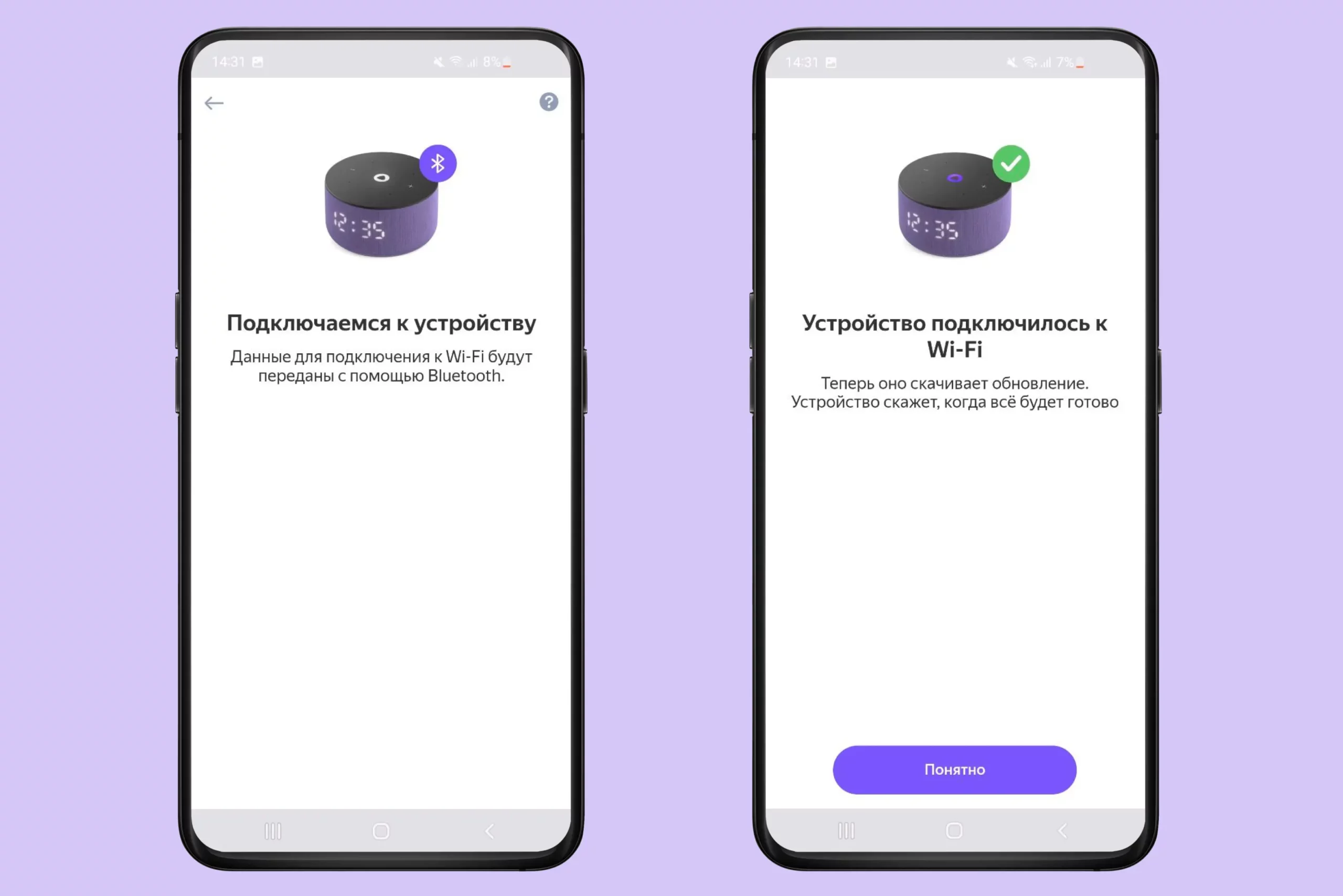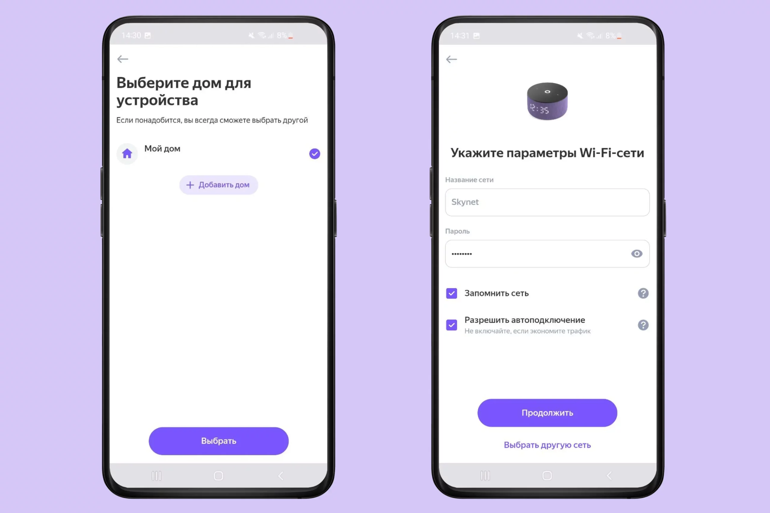 Следуйте подсказкам в приложении: выберите Wi-Fi сеть, введите пароль — и через пару минут устройство будет готово к работе.