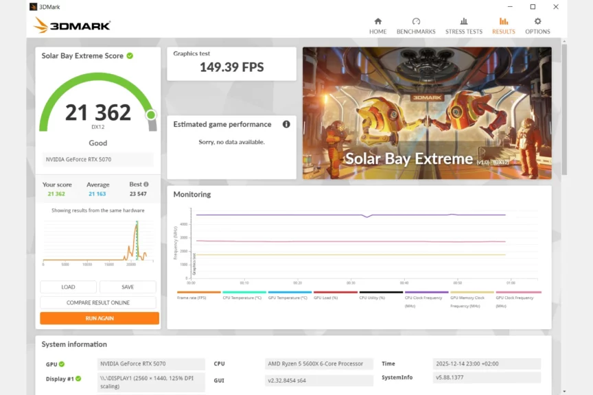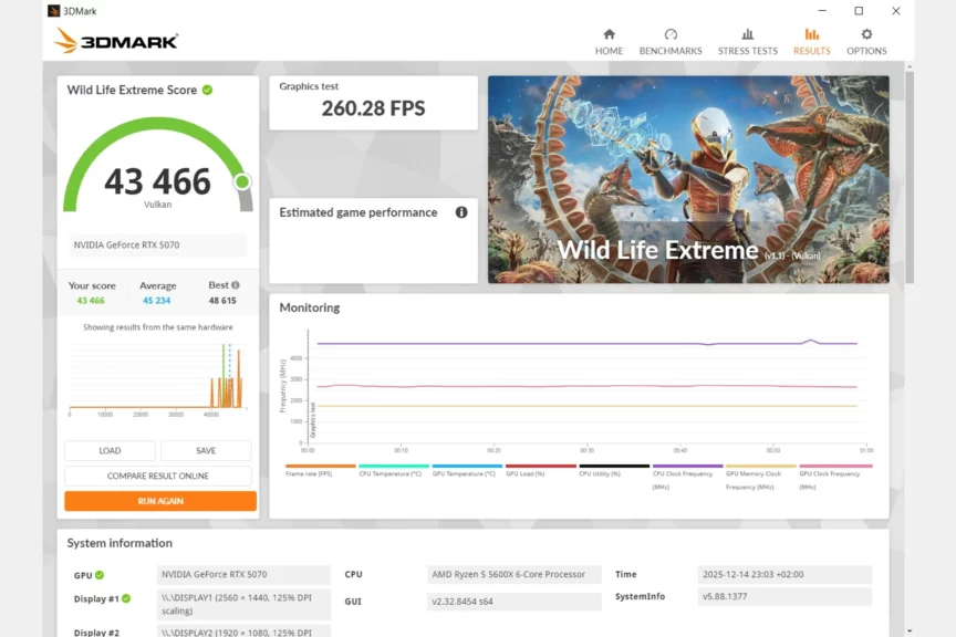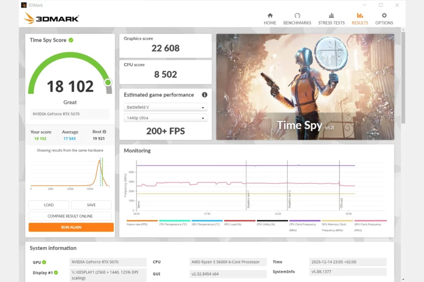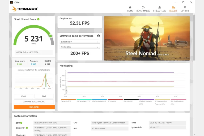 DICE нарочито отказались от трассировки и оптимизировали проект даже для старых систем. Так что на 5070 можно смело включать максимальные настройки и получать около 80−90 кадров в нативном разрешении 2560×1440. DLSS в режиме качества прокачает частоту до 120 кадров. Есть и NVIDIA Reflex для снижения задержек.