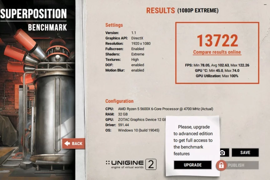 - 1% минимум: 74,3 fps