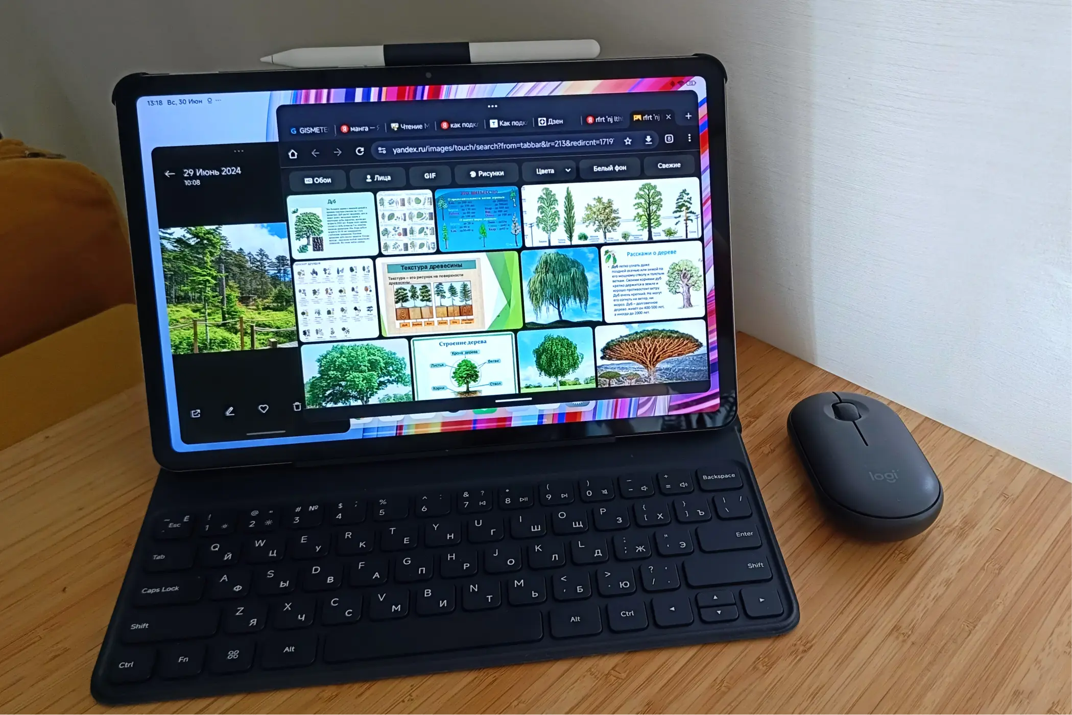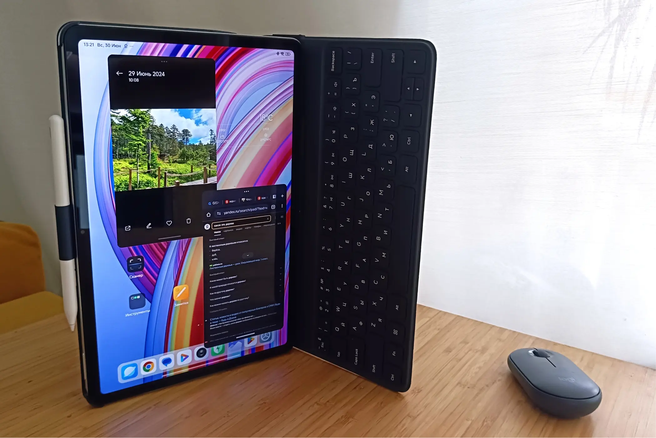 К планшету также можно подключить по Bluetooth мышку, чтобы стало совсем хорошо. С ее помощью легко переключаться между экранами, скрывать приложения, скроллить в интернете и работать с несколькими окнами. Последние, к слову, можно растягивать или ужимать, передвигать и расставлять как нравится, чтобы было удобнее работать. Спектр действий не такой, конечно, обширный, как на компьютере (все-таки есть ограничения по местоположению окон), но базово этого хватает.