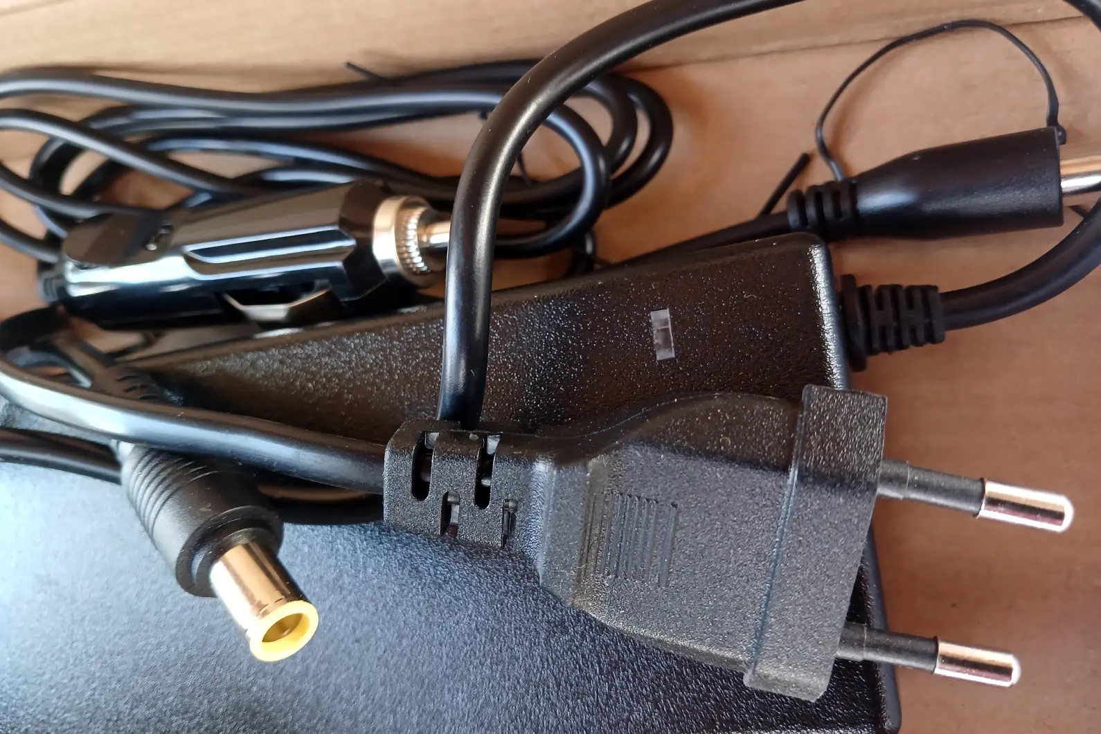 Кроме пауэрбанка, в коробке находятся два адаптера для зарядки устройства: от обычной и автомобильной электросети, а также инструкция на русском языке.