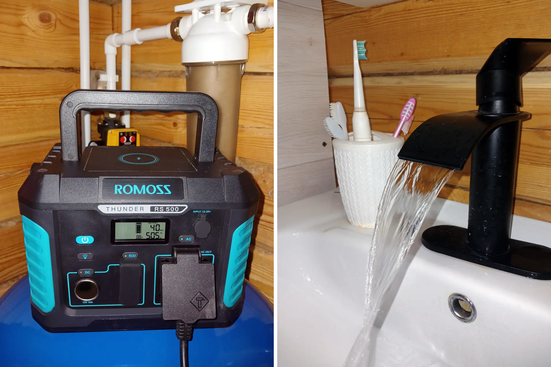 Если вы не подключены к центральному водопроводу, остаться без электричества — то же самое, что остаться без водоснабжения. Приятного мало. Попробуем исправить. Скважинный насос (по информации производителя) потребляет 550 Вт. Немногим больше, чем номинал станции. Выдержит ли аккумулятор?
