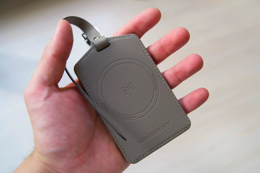 Сделана бирка очень качественно. Впрочем, как и вся серия аксессуаров. Изготовлена она из экокожи. Цветов два: черный и бежевый. Нитки не торчат, материал очень стойкий и не будет затираться. Здесь Magssory можно ставить в пример Apple с их чехлами и кошельками из FineWoven, которые перестали выпускать из-за жалоб пользователей.