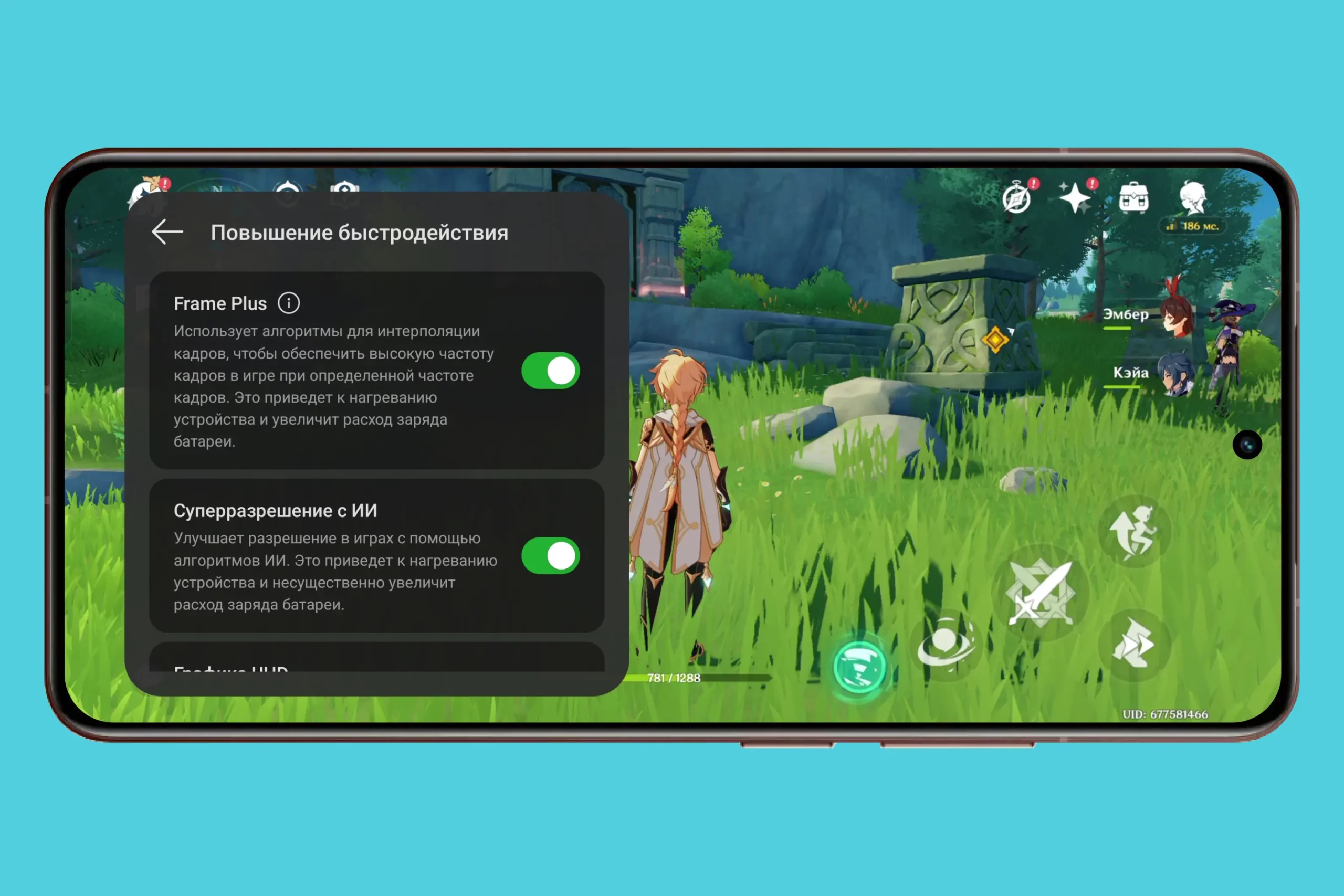 Естественно, процессор Snapdragon 8 Elite потянет любые игры на максимальных настройках графики. Но у realme GT 7 Pro есть чем удивить геймеров. Если для какой-то игры ее разработчик не предусмотрел частоту 120 Гц или графику в высоком разрешении, смартфон исправит это досадное недоразумение с помощью ИИ-алгоритмов. В игровом движке есть возможность оптимизировать геймплей как по разрешению, так и по частоте обновления. Игры идут максимально плавно, без лагов и зависаний, с превосходным качеством графики.
