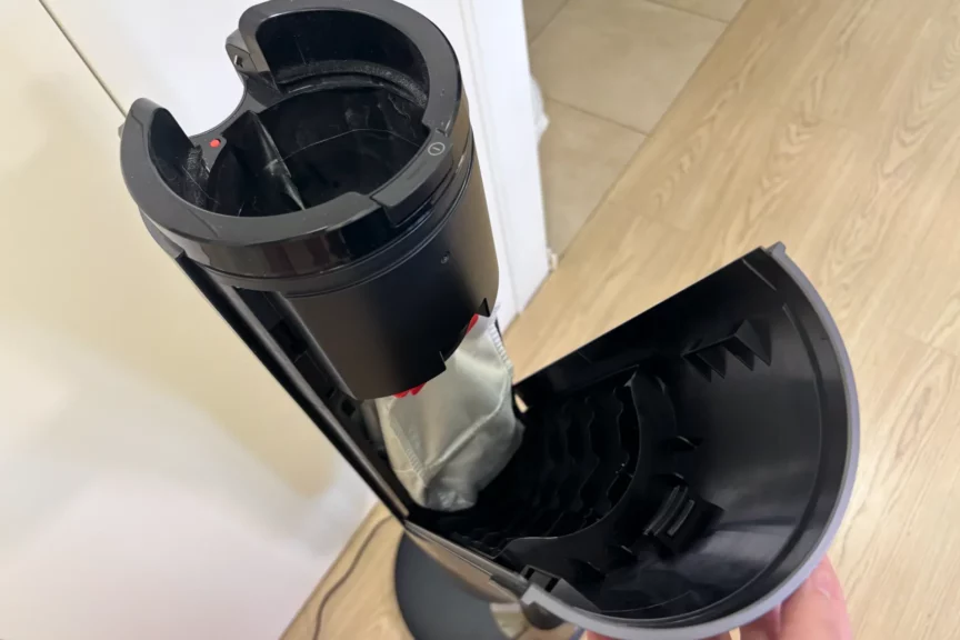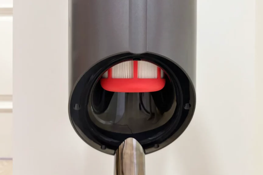 Кроме мешка для мусора, у станции есть два фильтра: тканевый и HEPA-фильтр. Это дополнение к тем двум, что стоят в пылесосе. Как итог — выше качество очистки, никаких запахов и пыли. Это не может не радовать, так как пылесос у меня стоит рядом с рабочим местом, где я провожу много времени и хочу дышать чистым воздухом.