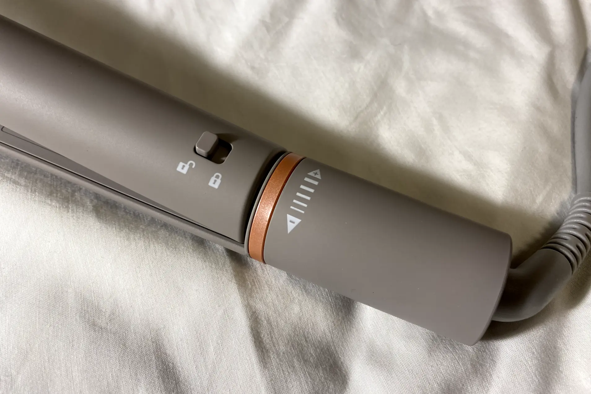 Я тестировала выпрямитель в сером оттенке, но на рынке он представлен еще и в белом и черном цветах. Сразу бросается в глаза минималистичный дизайн. Гаджет не перегружен кнопками и дисплеями, его внешний вид довольно лаконичен. Создатели добились этого за счет специального механизма, с помощью которого можно настроить температуру. В данном выпрямителе для этого не нужно нажимать кнопку — достаточно повернуть механический переключатель, а все данные отразятся на встроенном дисплее.