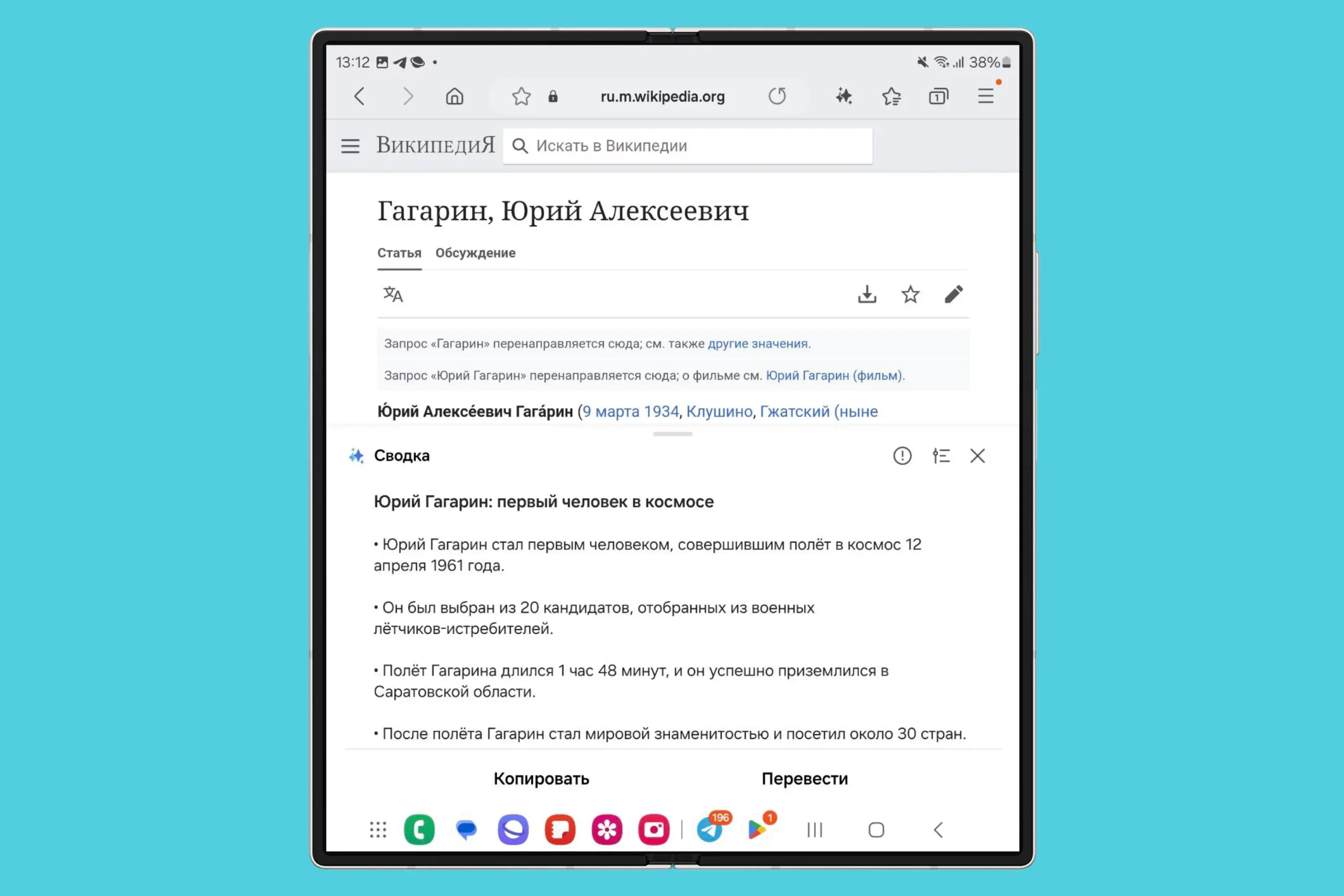 Подобным образом можно работать с браузером. Например, вы нашли нужную статью, но она очень большая. Чтобы не тратить время на изучение, нажимаем на значок AI и превращаем лонгрид в короткую сводку. ИИ выделяет самое важное и необходимое из текста и переводит его с любого иностранного языка. Теперь большие массивы информации не доставят дискомфорта в работе или учебе.