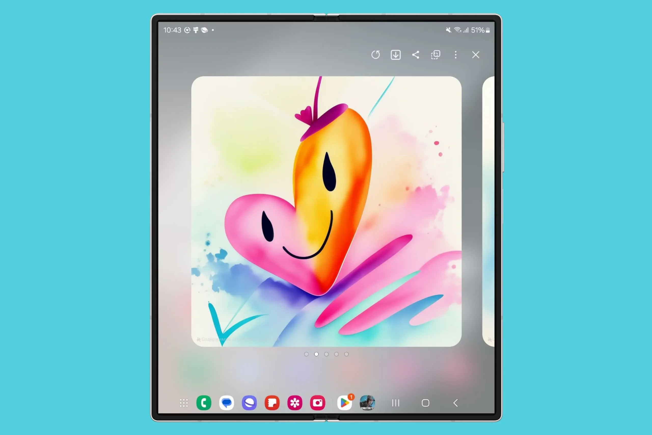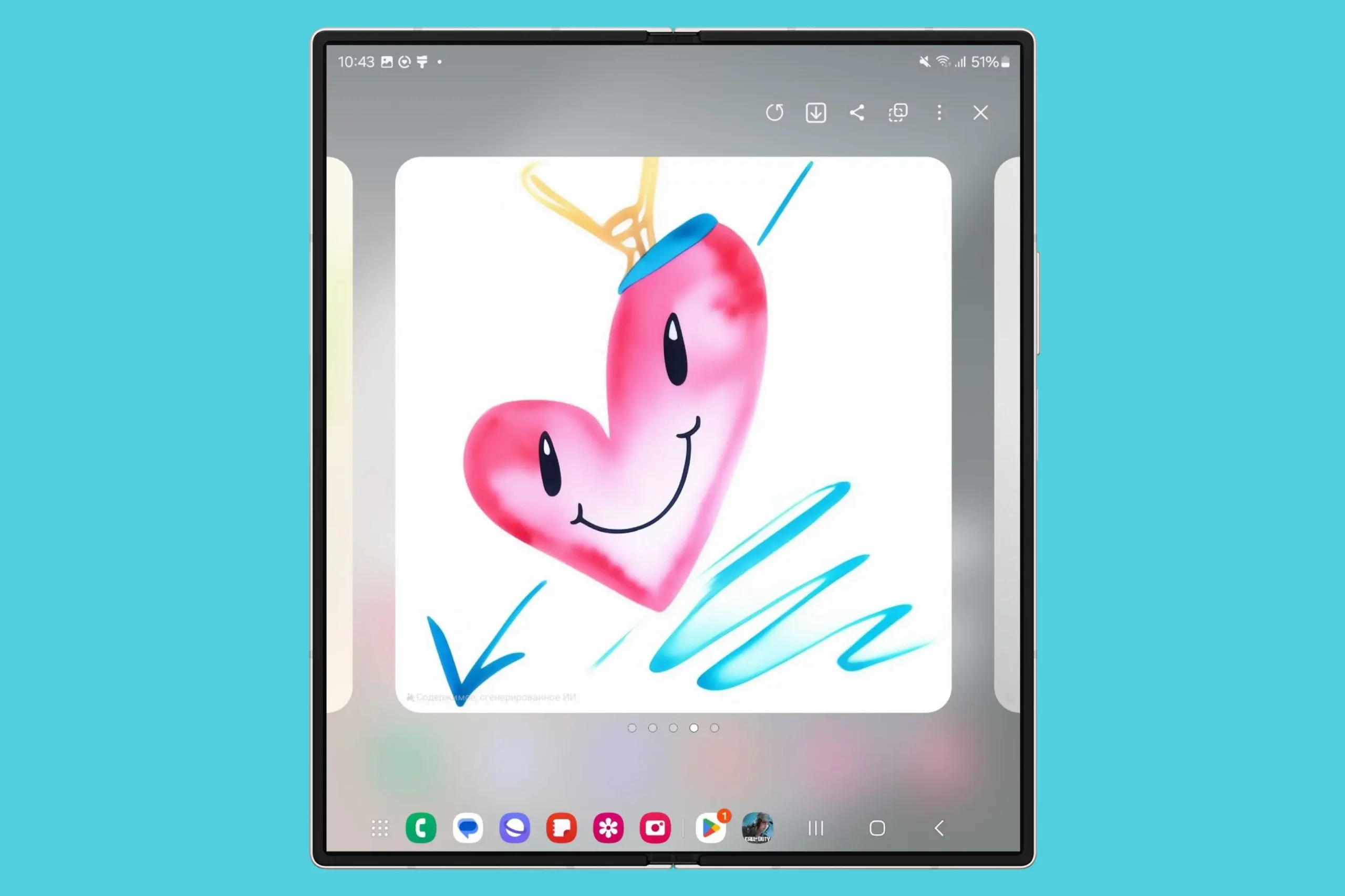 Теперь о работе с контентом. Galaxy Z Fold 6 станет идеальным спутником для всех творческих людей. Почему? Например, вы нарисовали в заметках быстрый скетч, а система поможет сгенерировать что-то более интересное. Например, сделать на его основе рисунок, 3D-мультфильм, эскиз, поп-арт и акварель. Люди с большой фантазией точно оценят. Смартфон предлагает 4 варианта к каждой заданной теме, и вы можете постоянно добавлять элементы, модифицируя картинку.