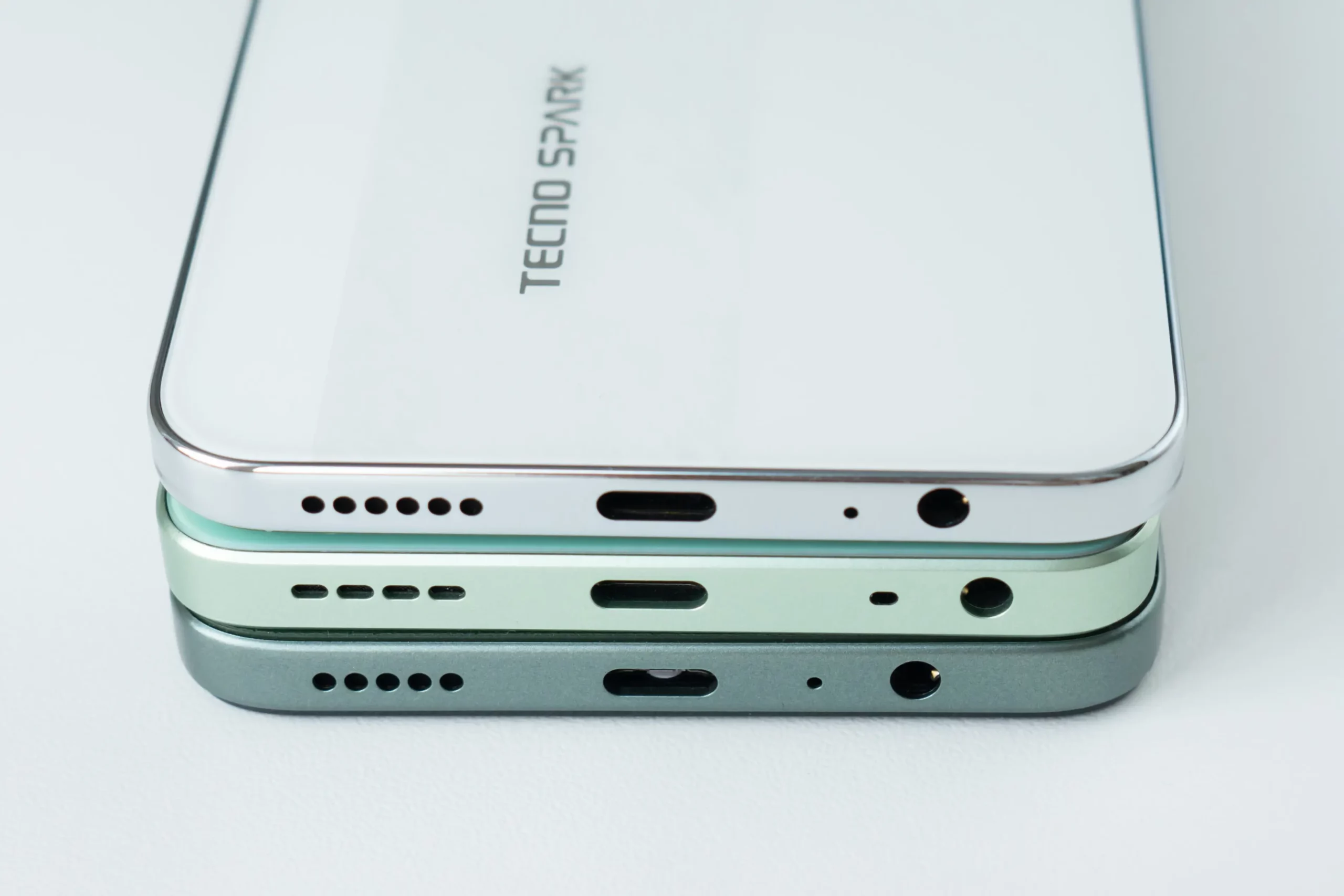 Боковая рамка у всех пластиковая, но замаскирована под металл. У HONOR и realme она матовая, а у TECNO — блестящая и полированная: смотрится выигрышнее, но активно собирает отпечатки и разводы.