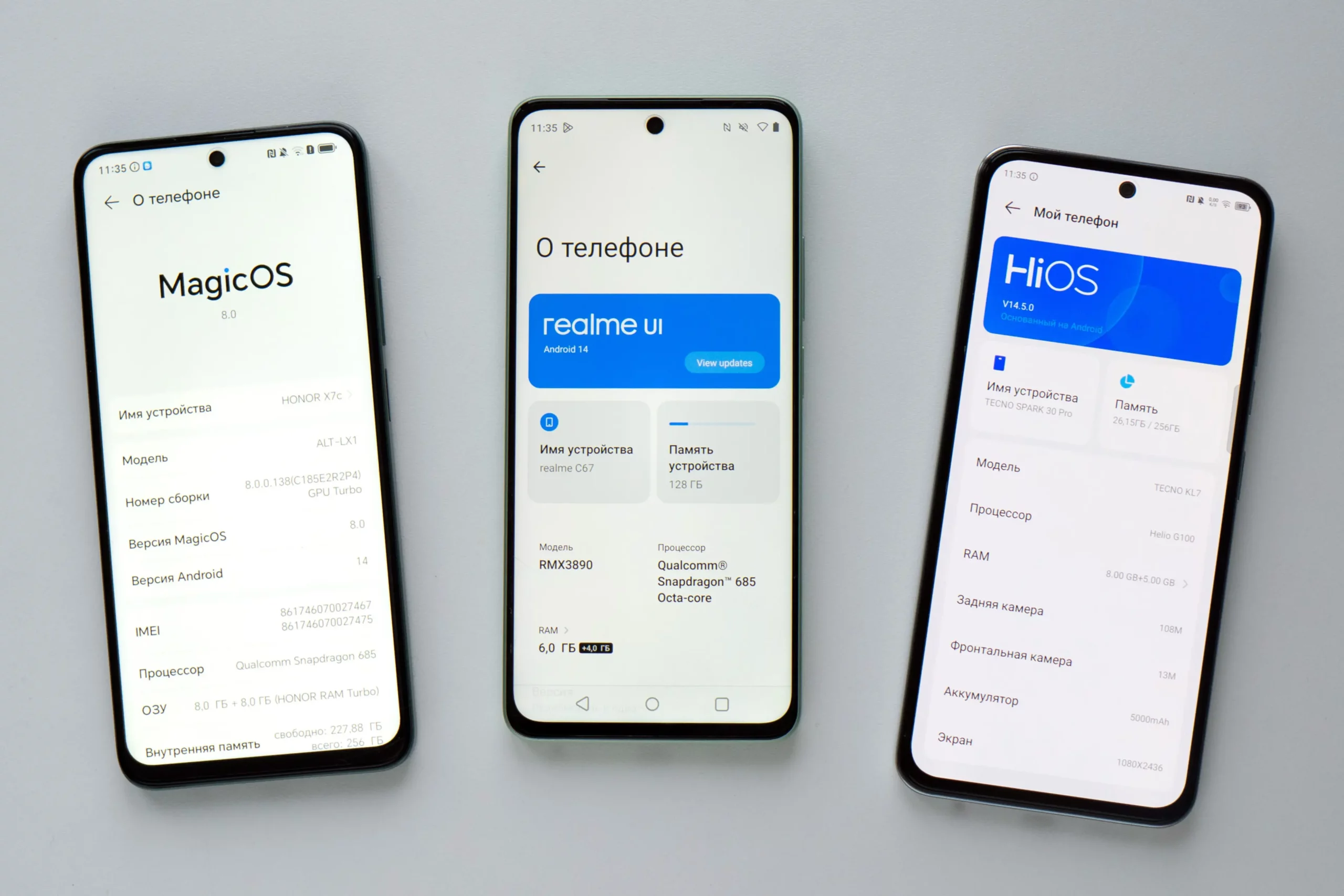 | Операционная система | MagicOS 8 на Android 14 | Realme UI на Android 14 | HiOS 14.5 на Android 14 |